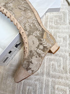 CD Naughtily-D Heeled High Boots Beige Transparent Mesh Roses Embroidery And Suede