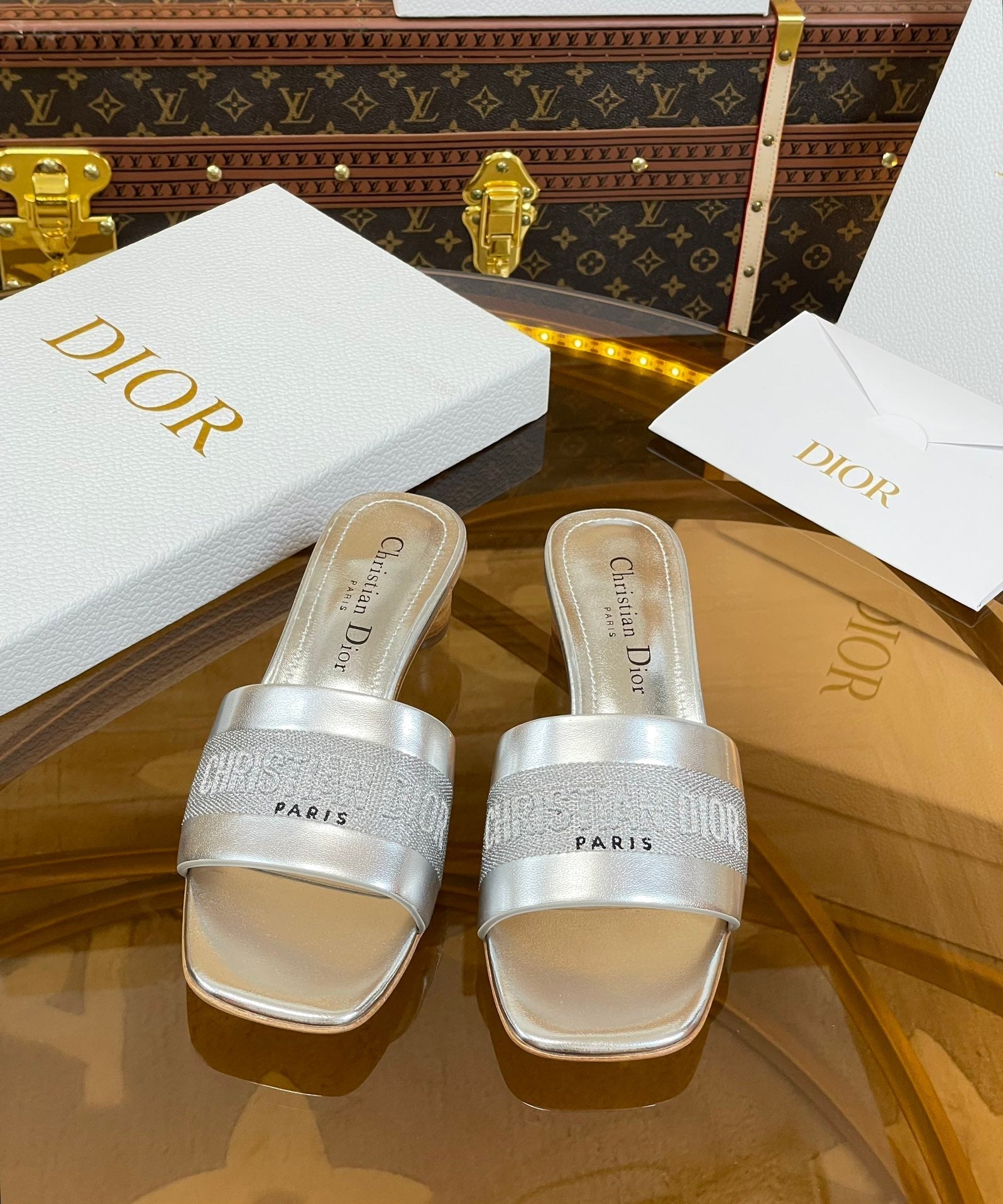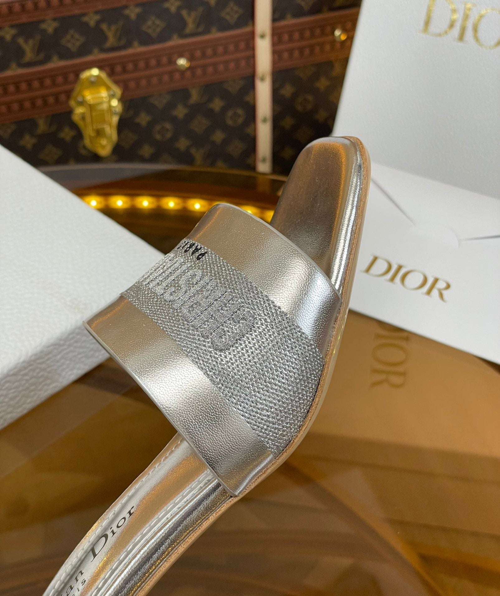 cd slide 45 silver metalic calfskin embroidered cotton