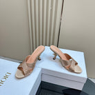 CD Tribales Heeled Slide 80mm Beige Lambskin And Studded With Stones