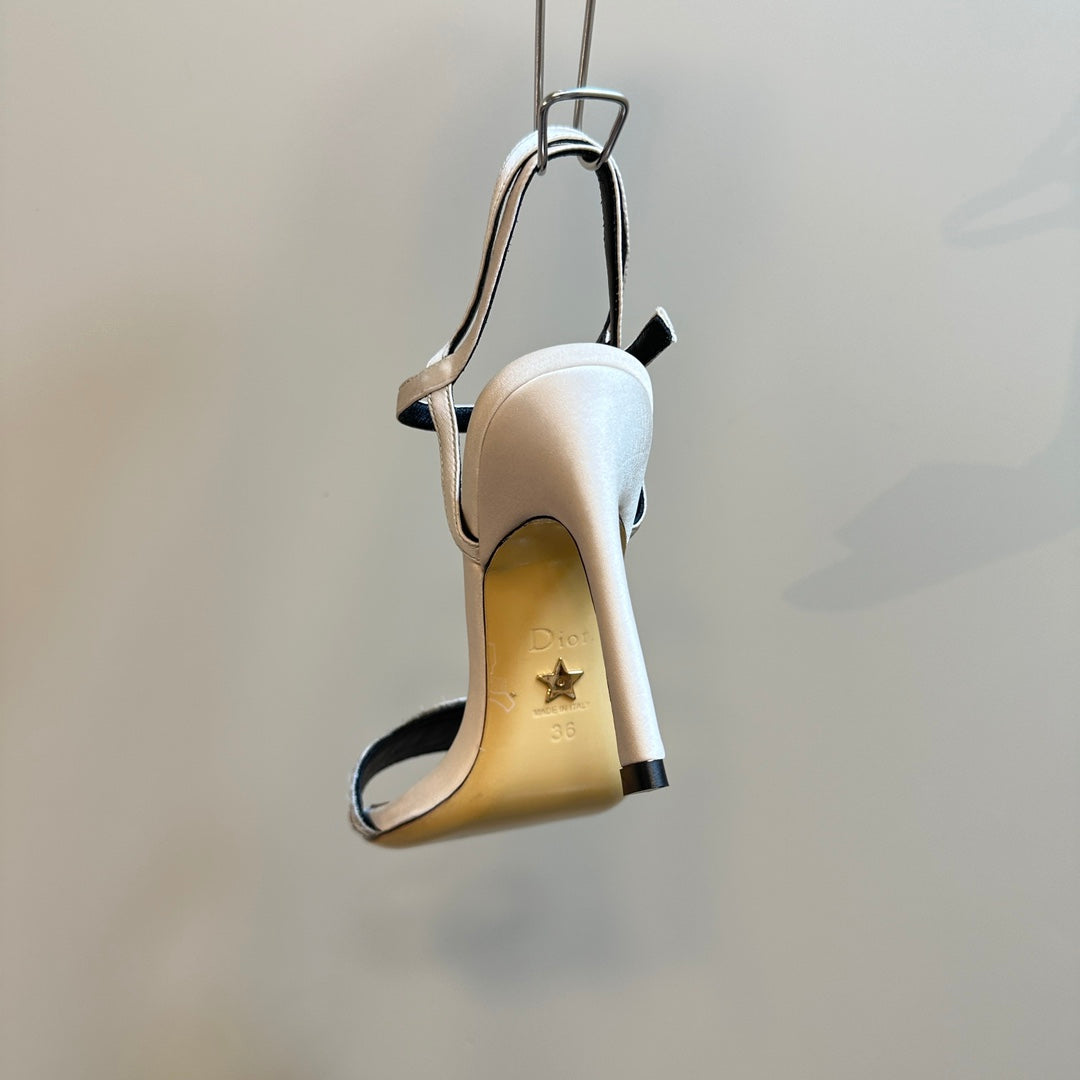 CD Dway Heeled Sandal 105mm White Grey Silk And Lambskin