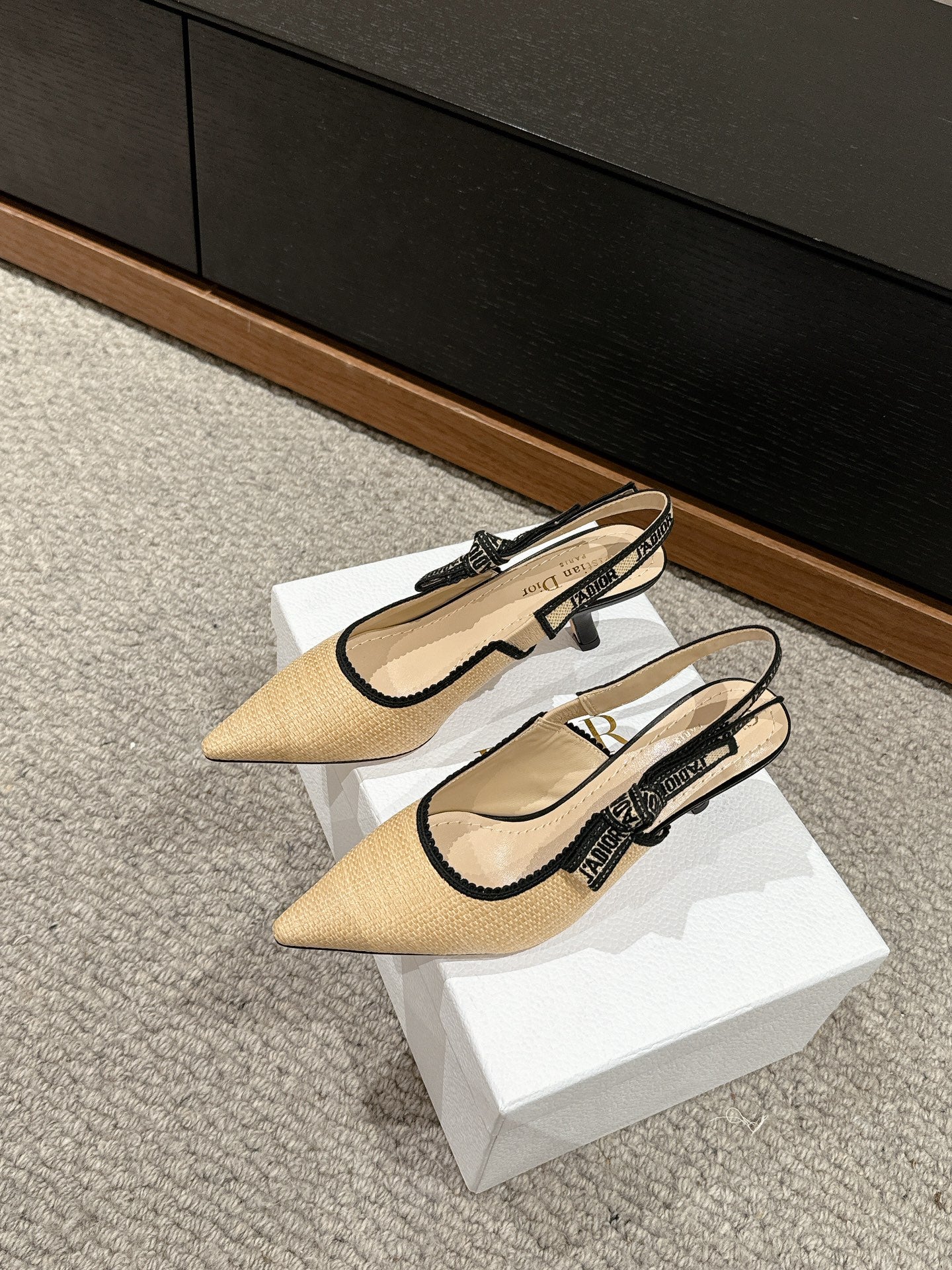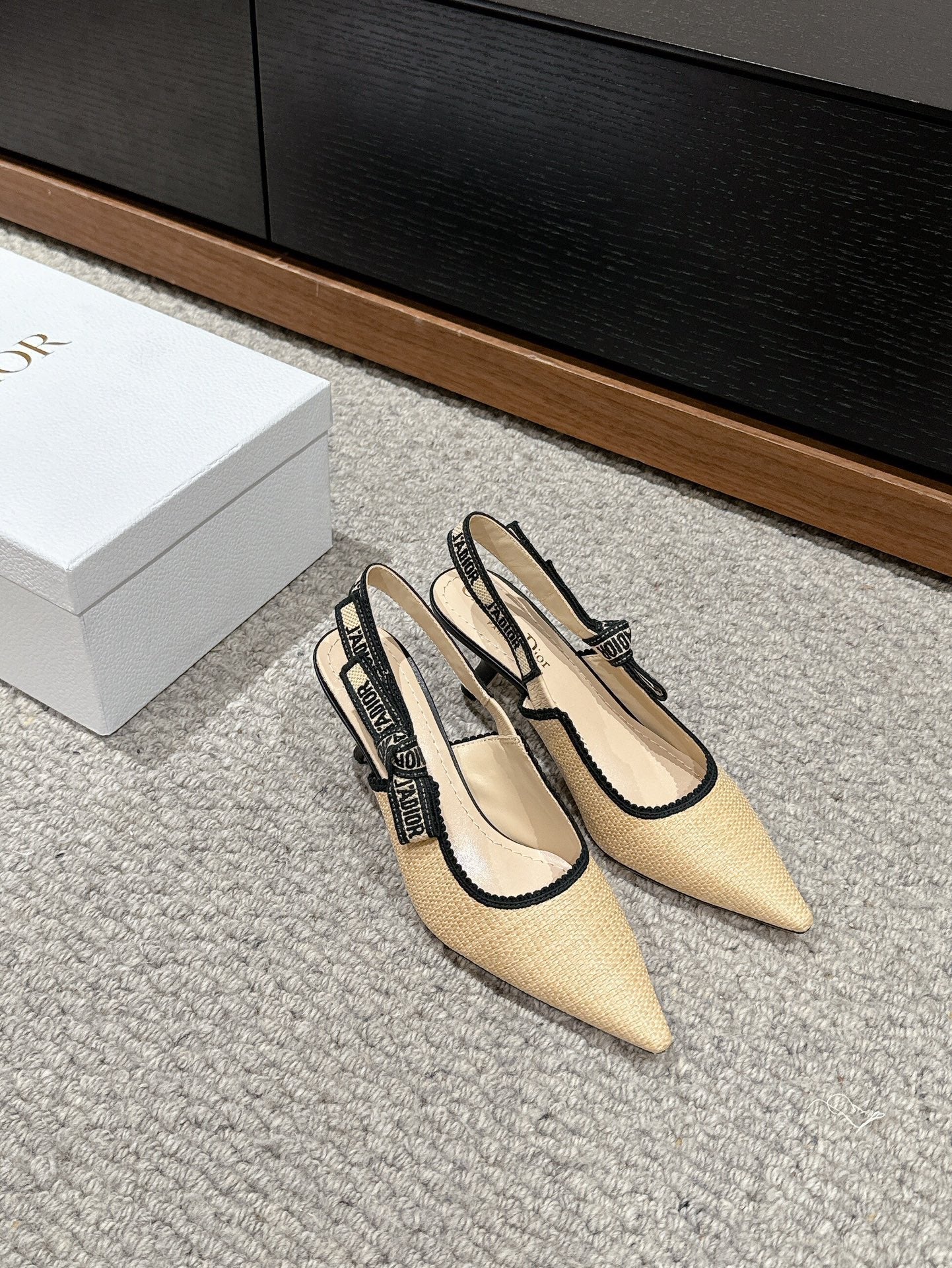 cd slingback 65 beige raffia lambskin