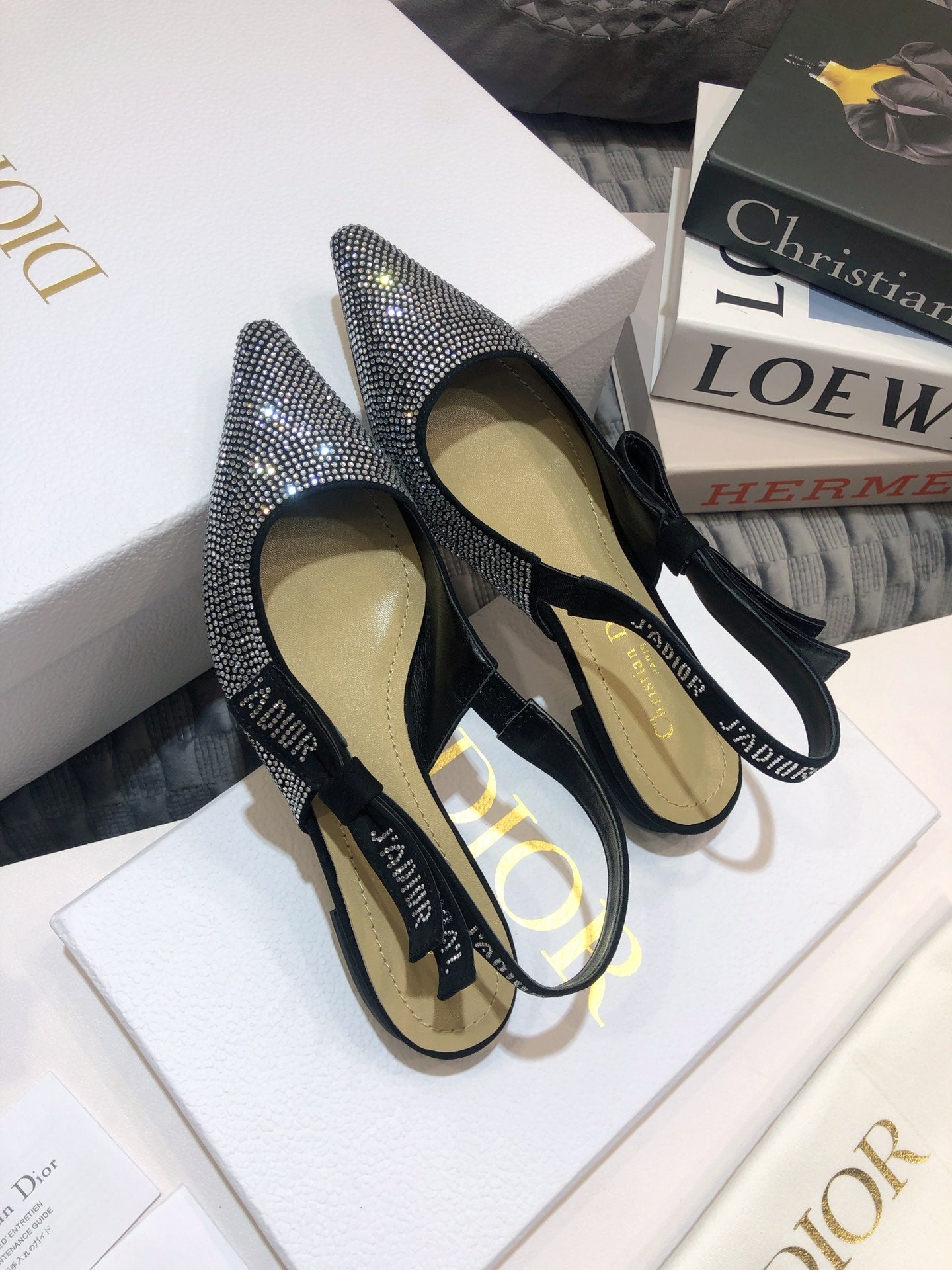 JAdior slingback flat black full diamond crystal and seude