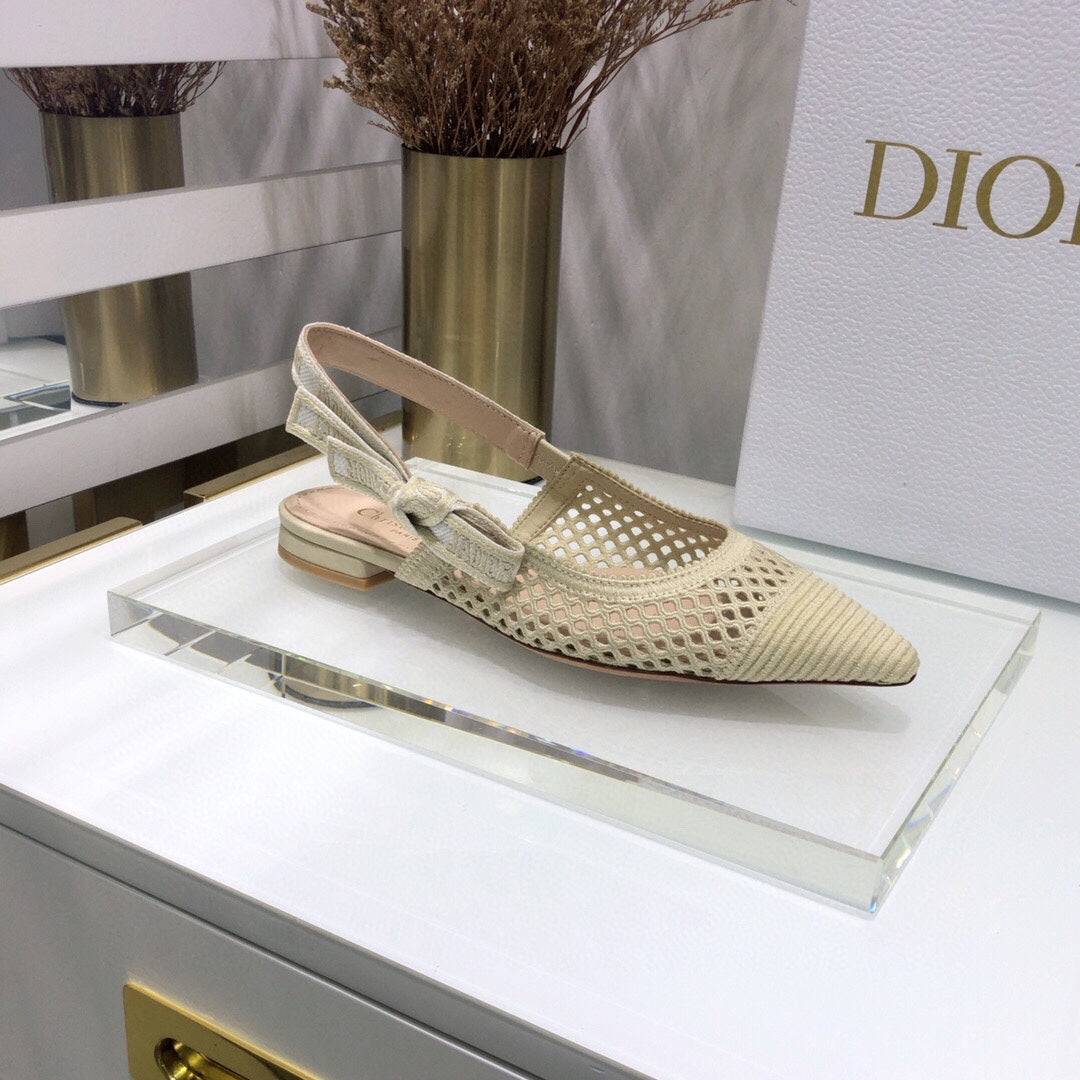 JAdior slingback flat transparent mesh beige embroidered cotton
