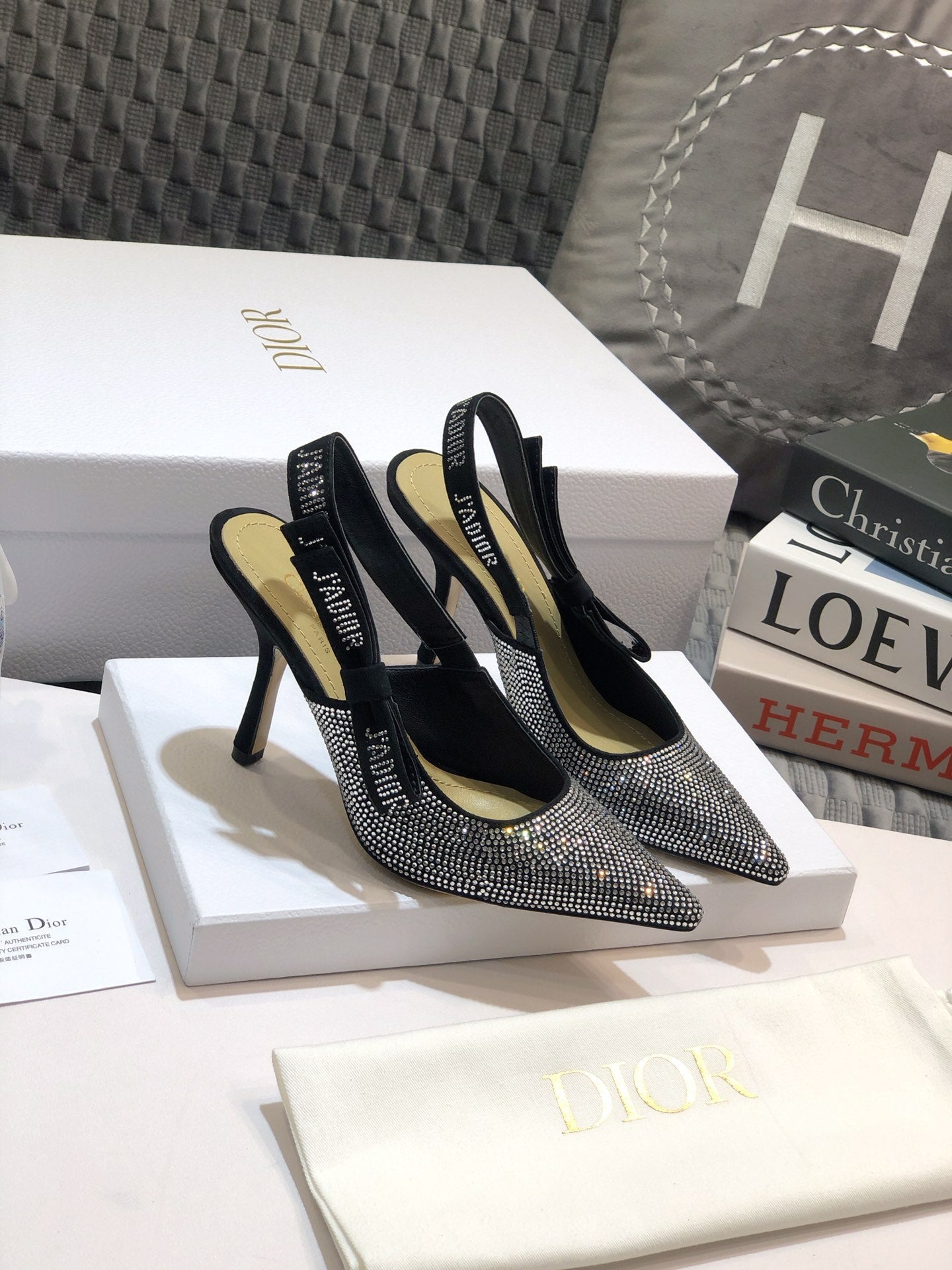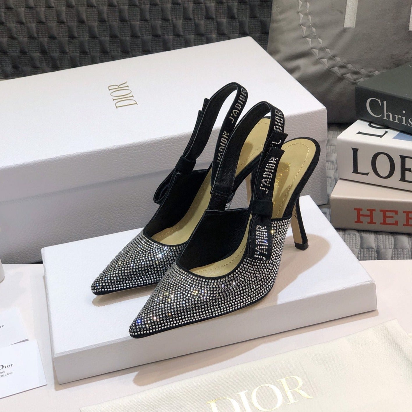 JAdior slingback pump 95 black full diamond crystal and seude