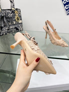 J'Adior Slingback Pump 95mm In Beige Floral Embroidered Lace Fabric 100842