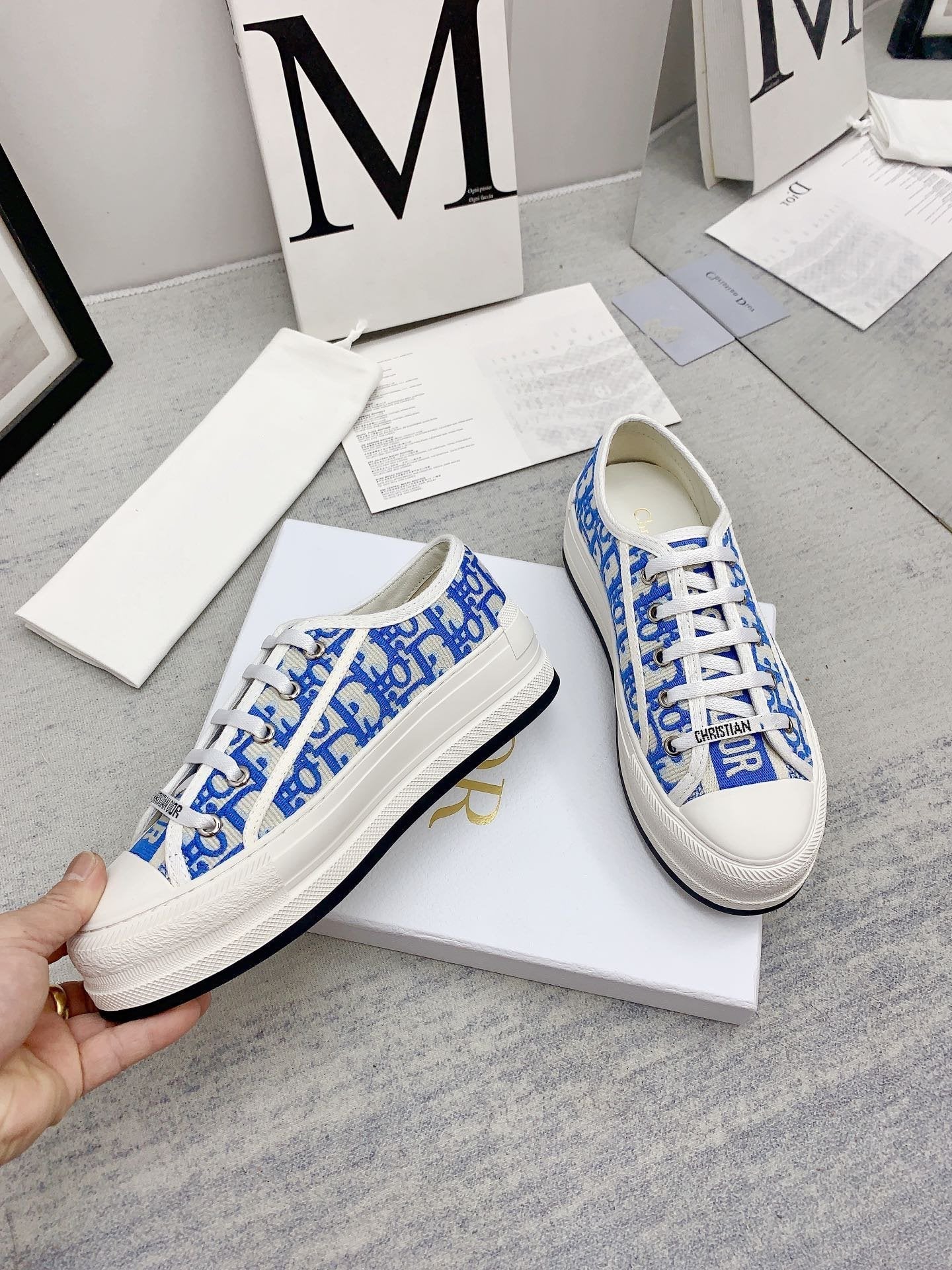 walkn 45 azure blue oblique embroidery canvas