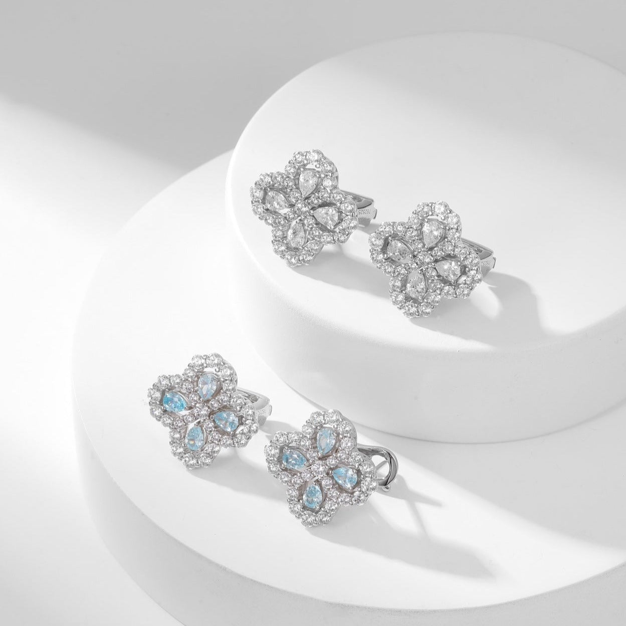 CLOVER 1 DIAMOND BLUE SKY SILVER EARRINGS