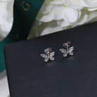 BUTTERFLY SILVER DIAMOND PAVED PETITE STUD EARRINGS