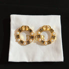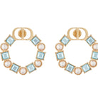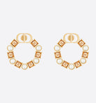 CD EARRINGS GOLD-FINISH METAL WITH RESIN PEARLS AND AMBER-COLORED CRYSTALS