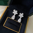 GRA IRREGULA FLOWERS WATER DROPS SILVER DIAMOND EARRINGS