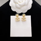 MINI FLOWER DOUBLE C DIAMOND GOLD EARRINGS