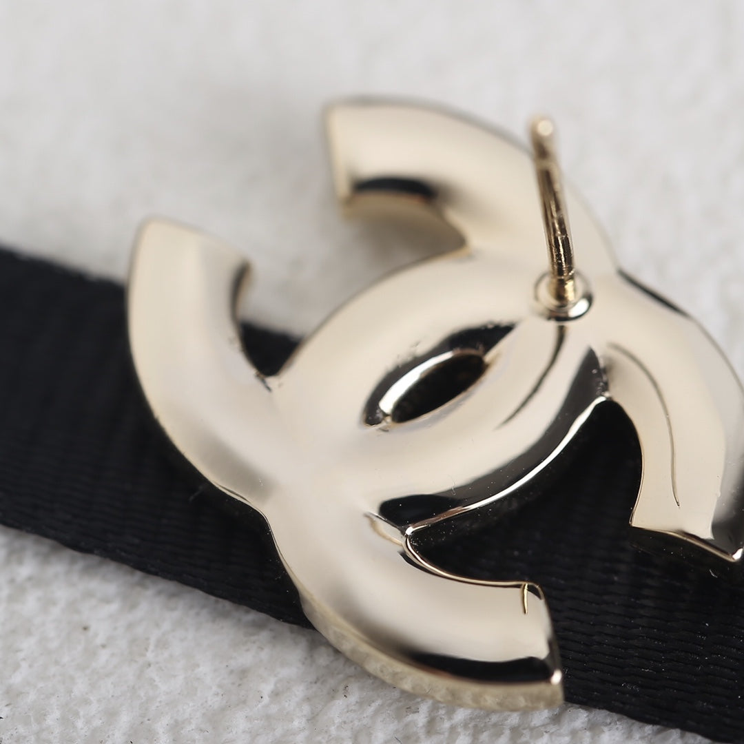 CC DIAMOND BLACK ENAMELS OVAL STUD EARRINGS