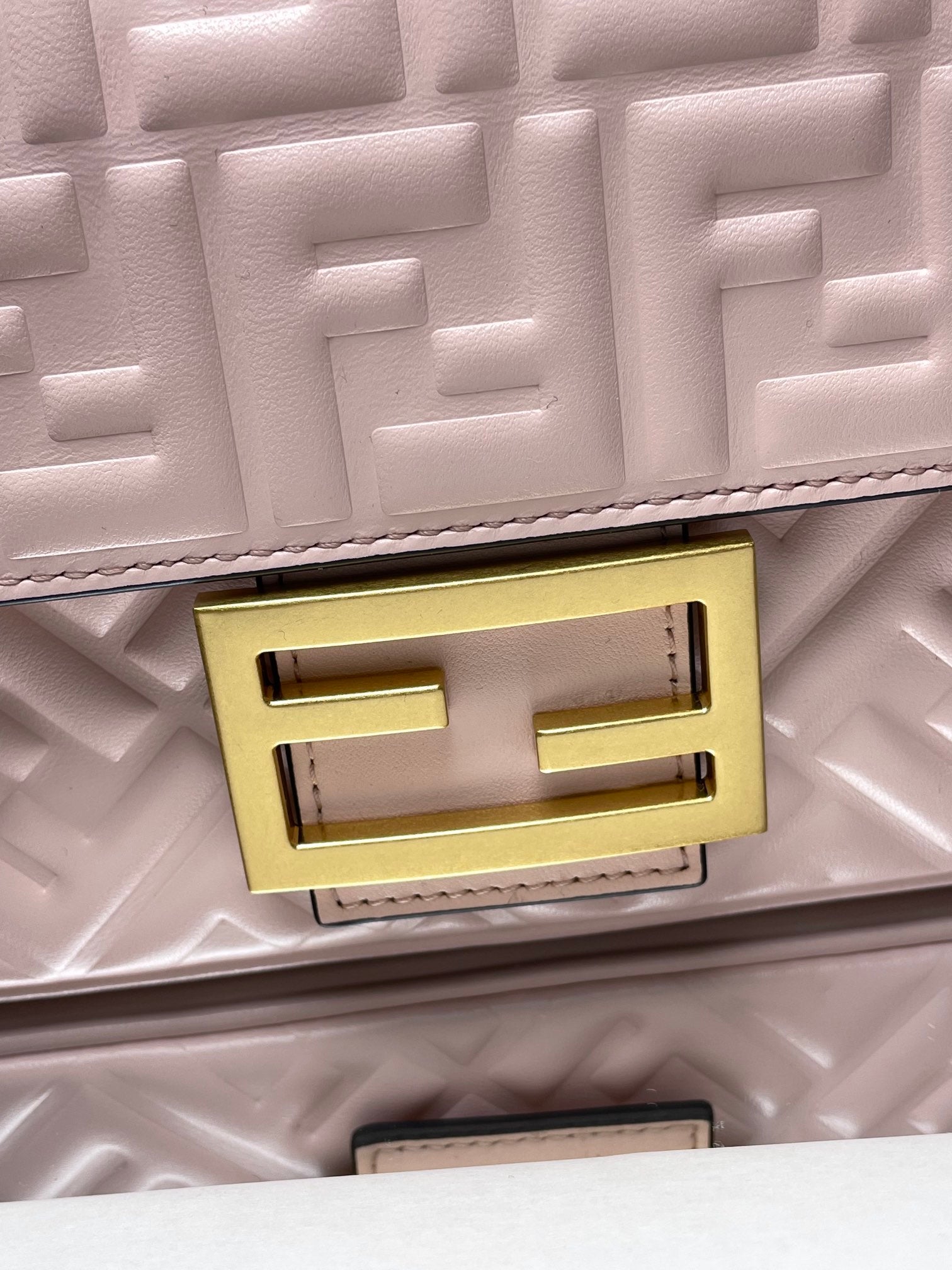Fend Baguette 24 Bag With FF Motif Pink Leather Ghw