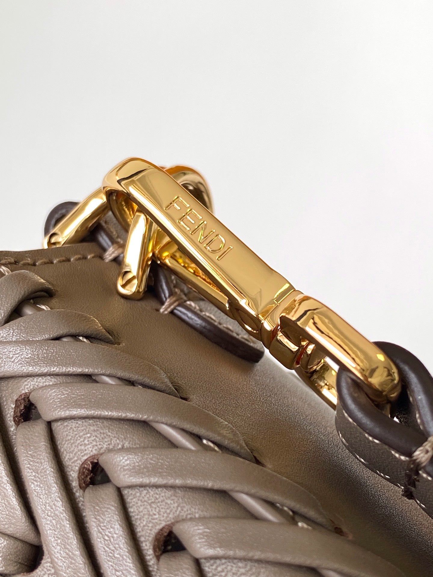 Fend Baguette 27 Bag Black Brown Sand interlaced leather Ghw
