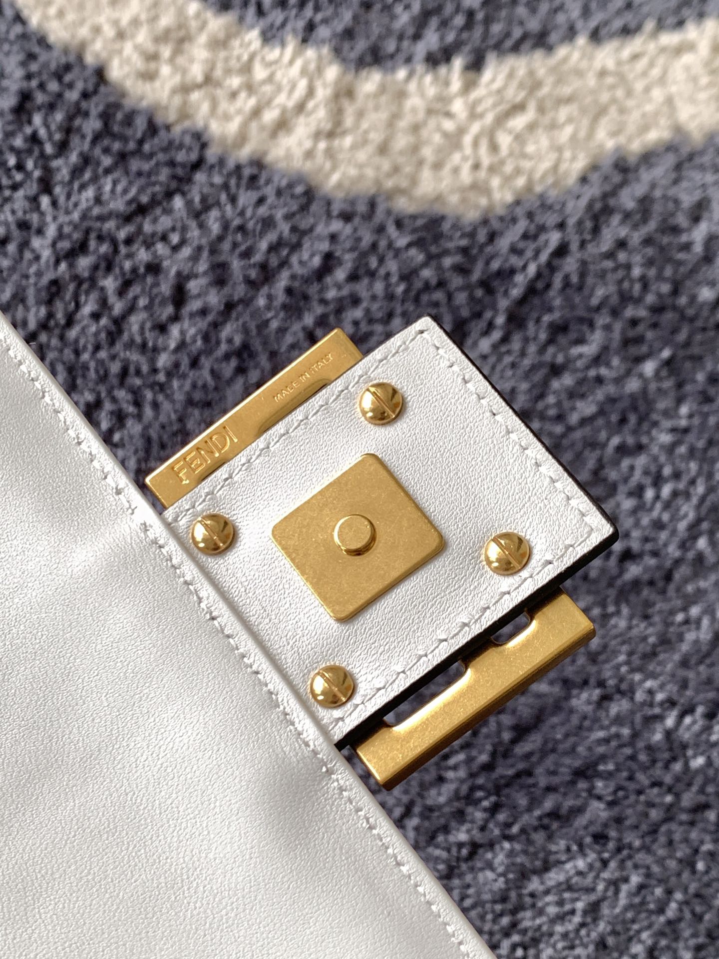 Fend Baguette 27 Bag With FF Motif White Leather Ghw