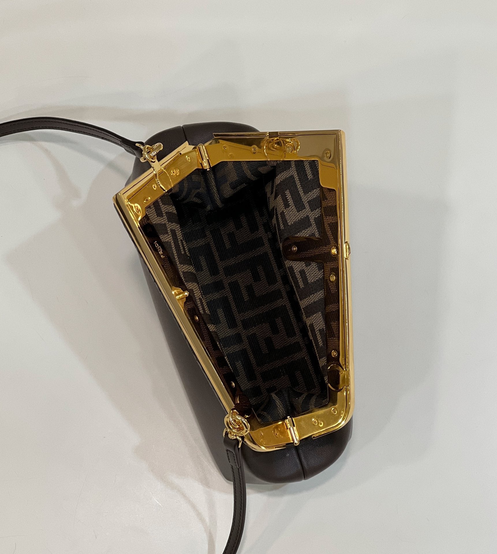 FENDI FIRST MEDIUM 26 BAG IN CHOCOLATE BROWN CALFSKIN WITH GOLD HARDWARE