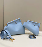 FENDI FIRST SMALL 32 IN LIGHT BLUE NAPPA LEATHER BAG GOLD HARDWARE