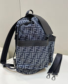 FENDI STRIKE LARGE 46 FF MIDNIGHT BLUE JACQUARD FABRIC BACKPACK