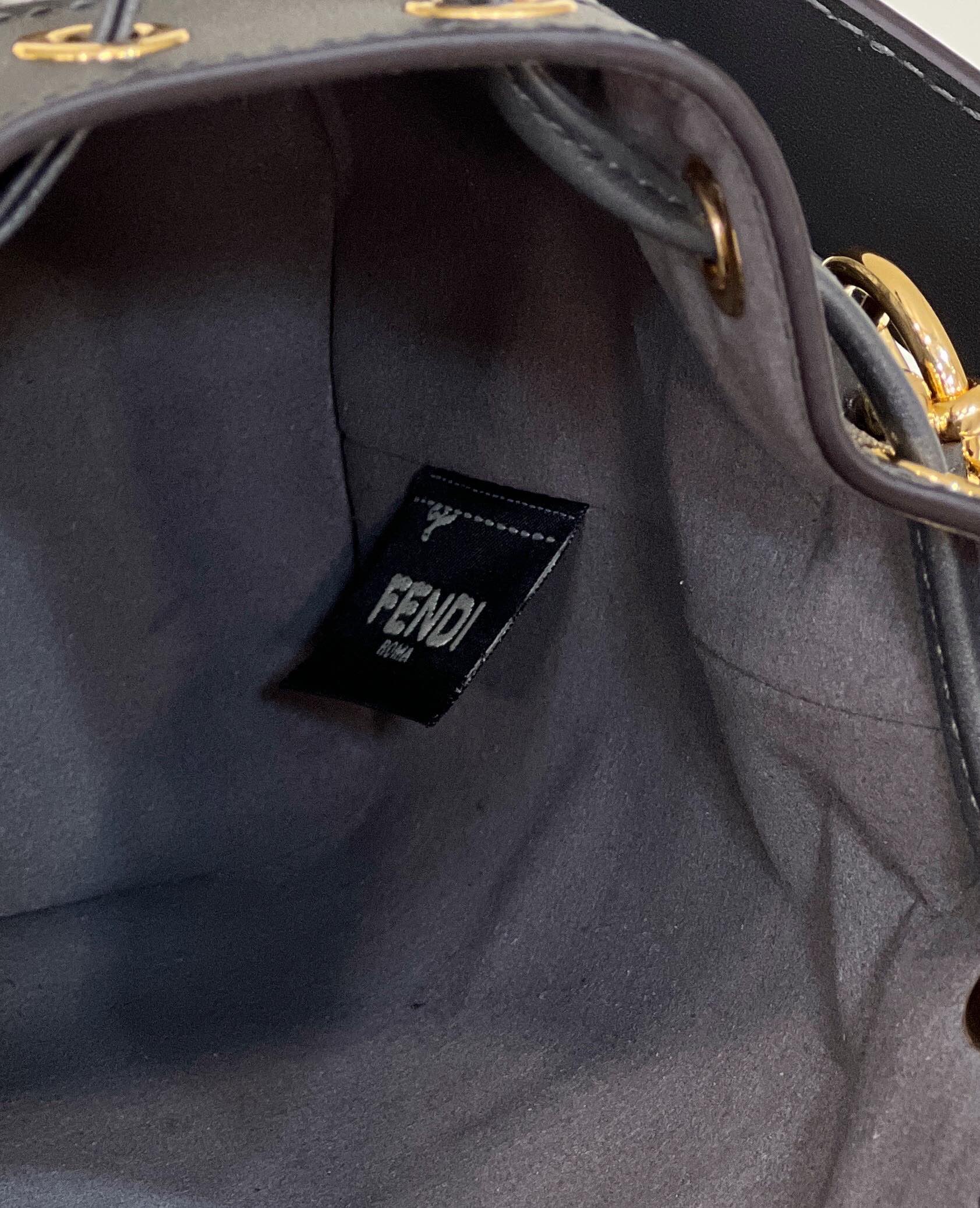 MON TRESOR MINI 18 BAG IN BLACK MIX GREY FF FABRIC WITH GOLD HARDWARE