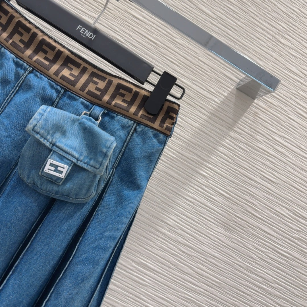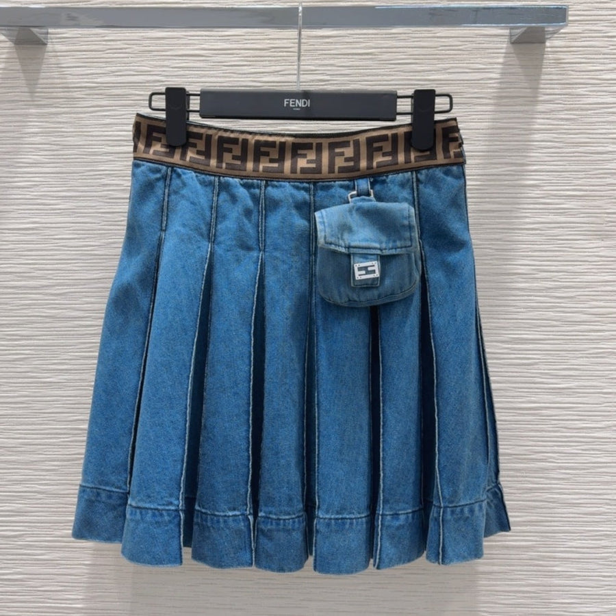 Fendi 2025 Pleated Denim Skirt Blue Cotton