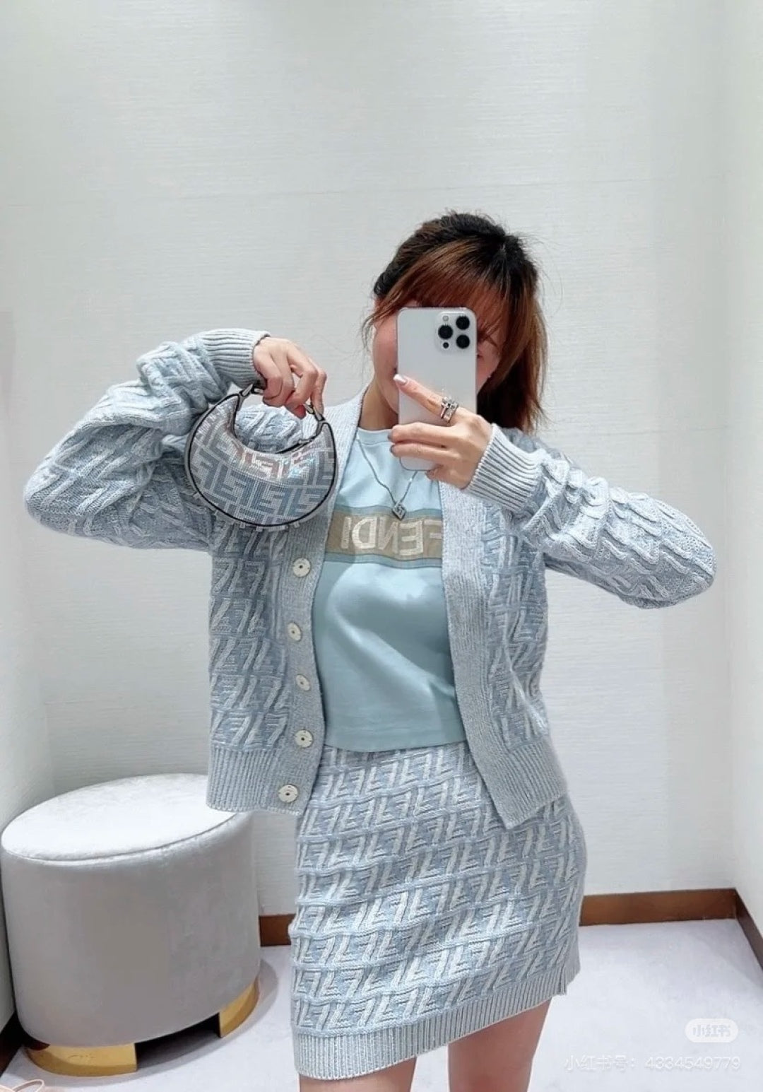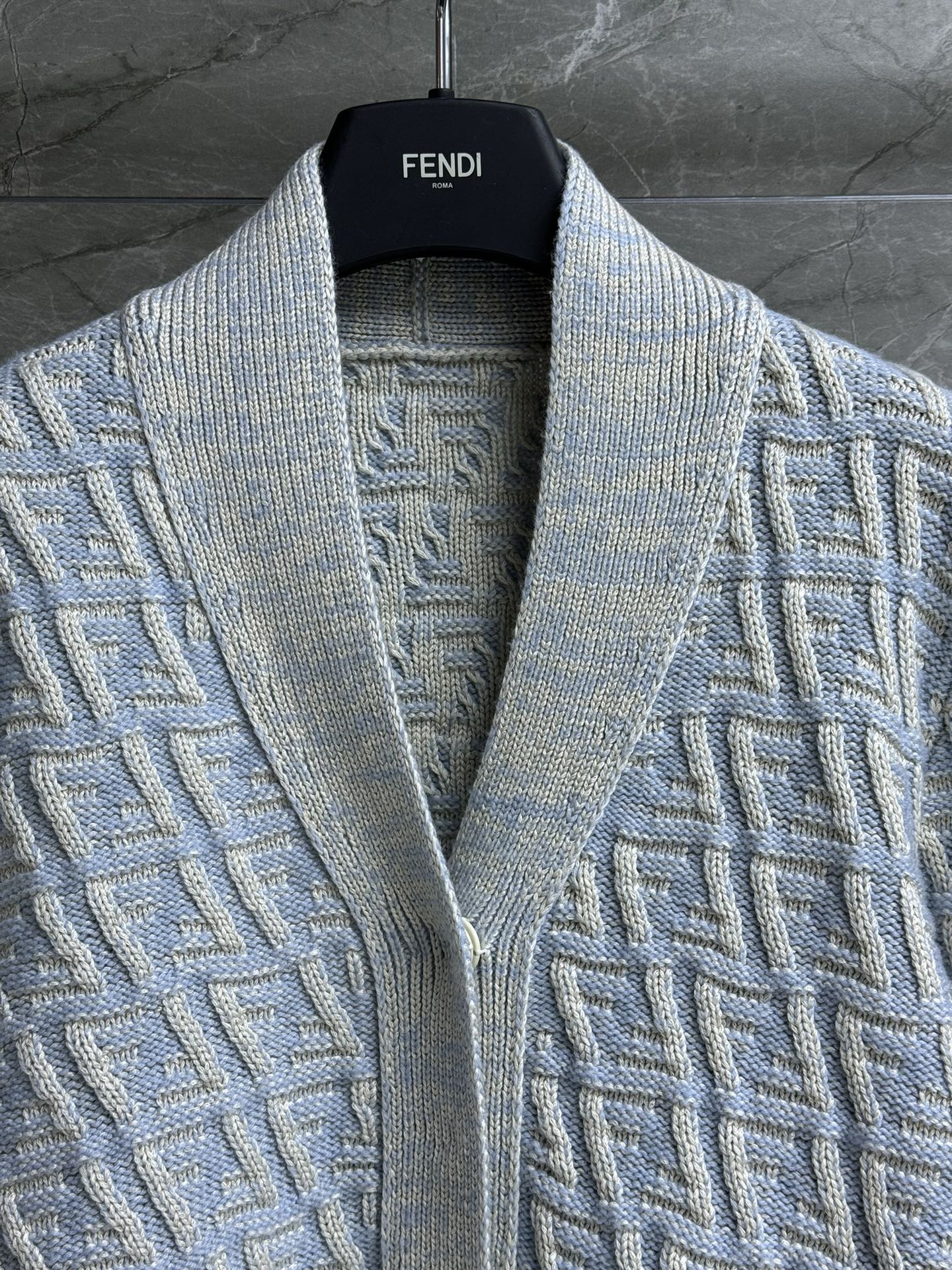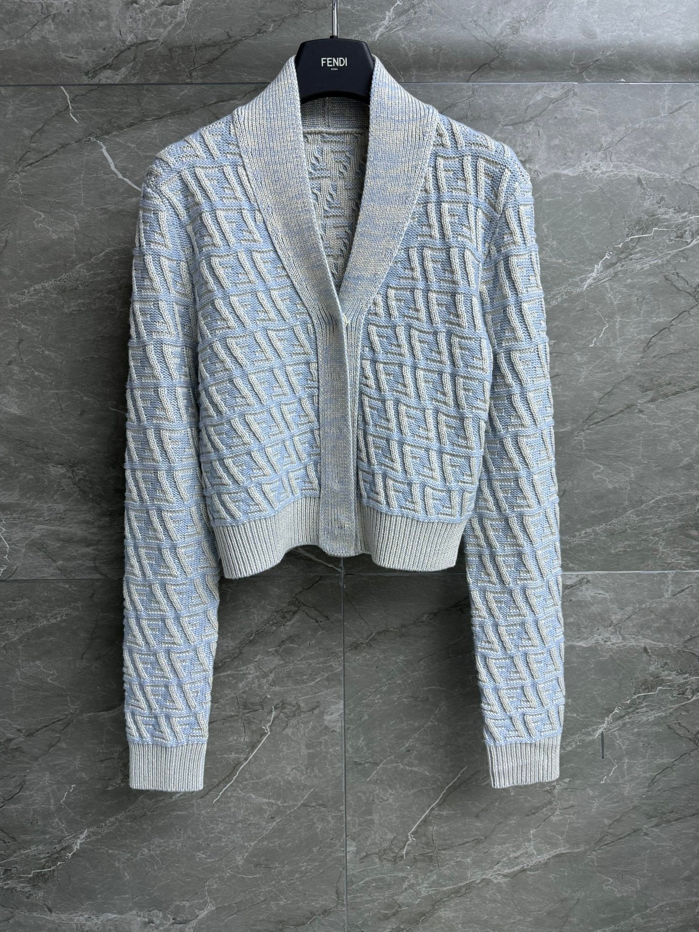 Fendi 2025 V-neck Cardigan Ligth Blue Wool