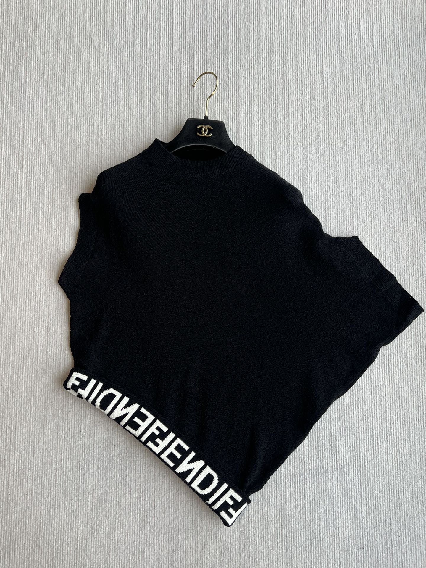 Fendi 25 Asymmetric Hem Cape-sleeved Crewneck Jumper Black Viscose