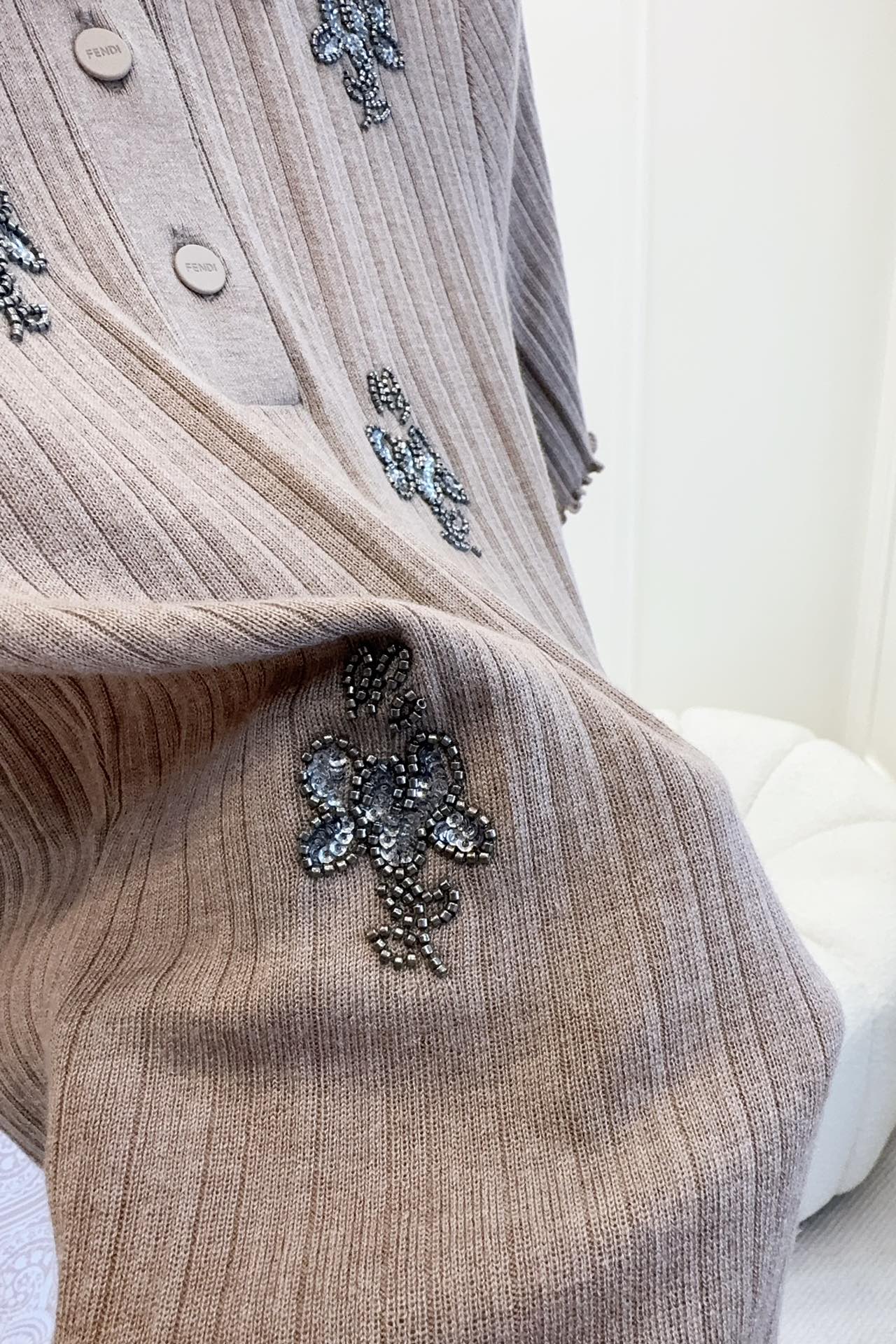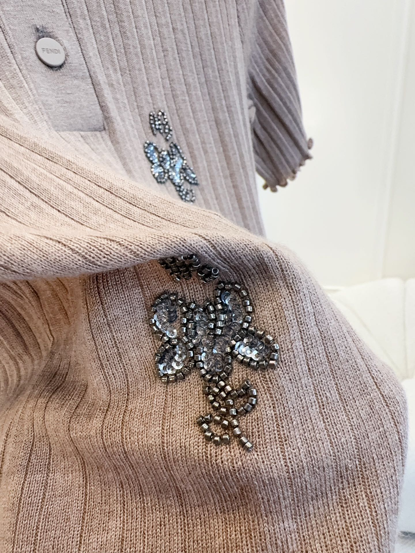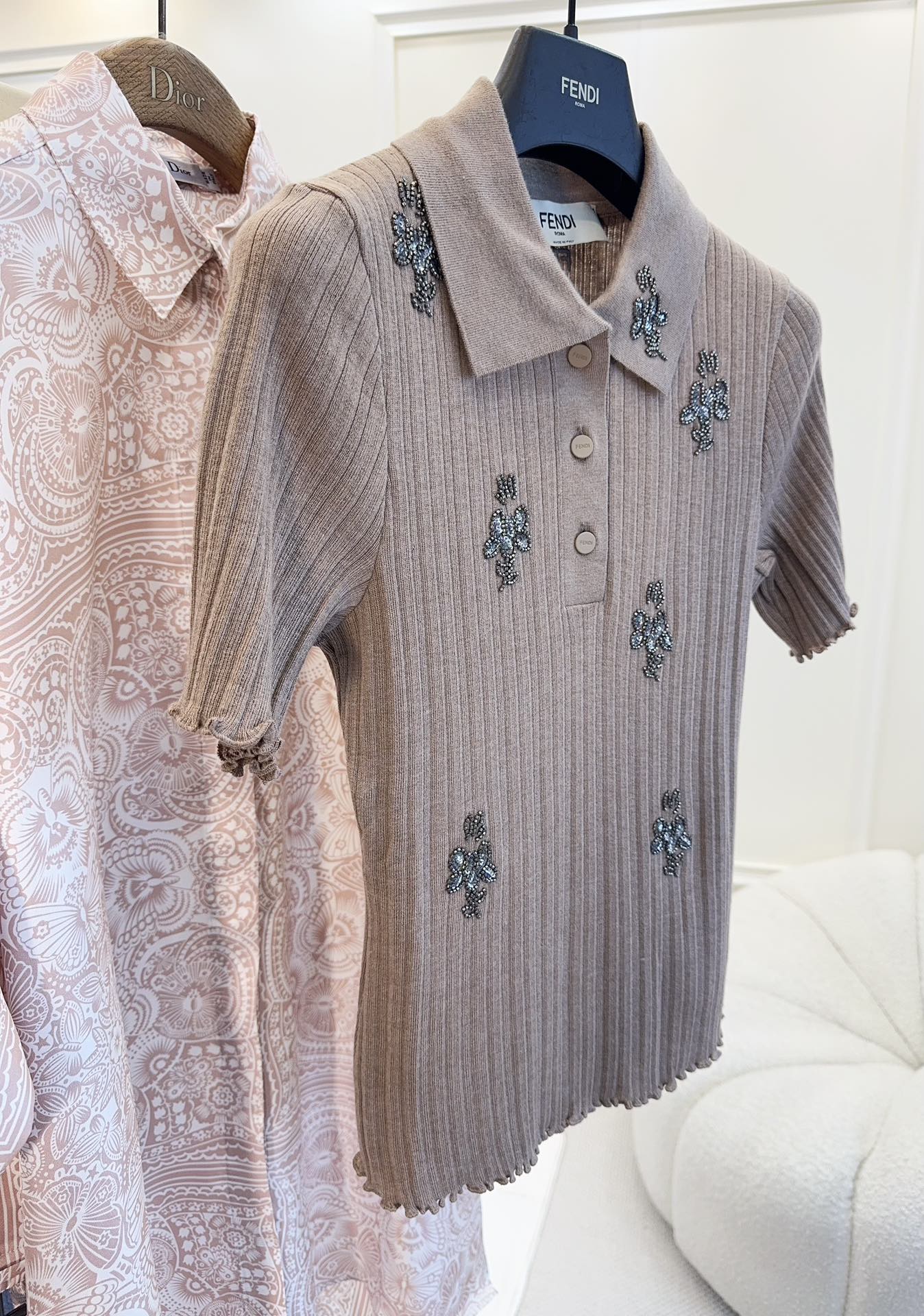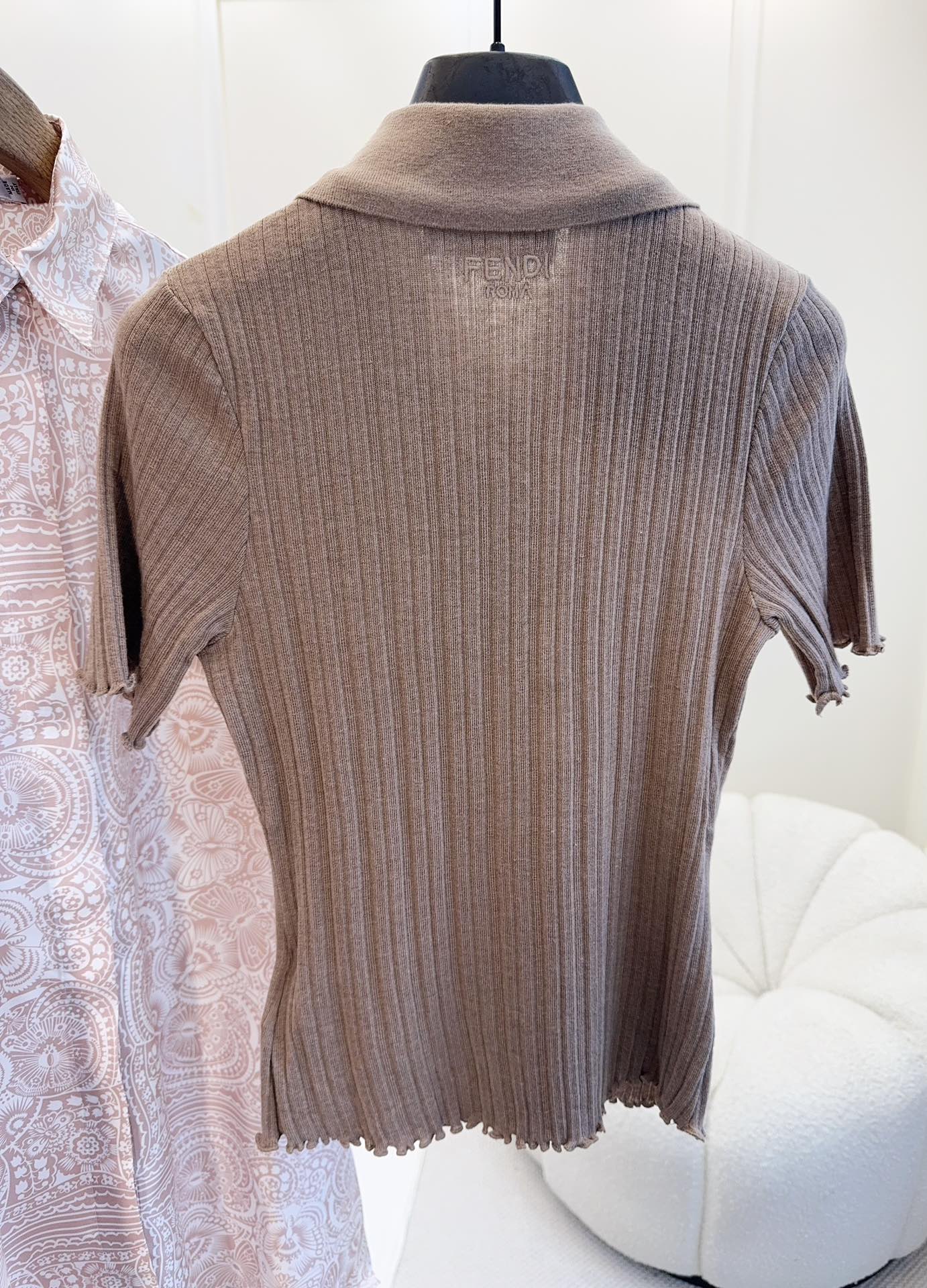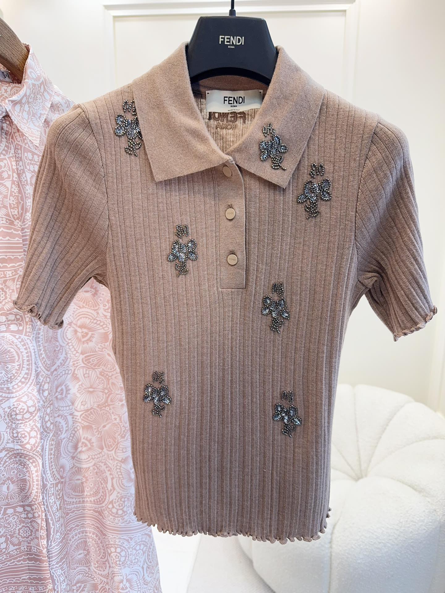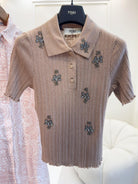 Fendi 25 Beaded Polo shirt Pure Beige Cotton