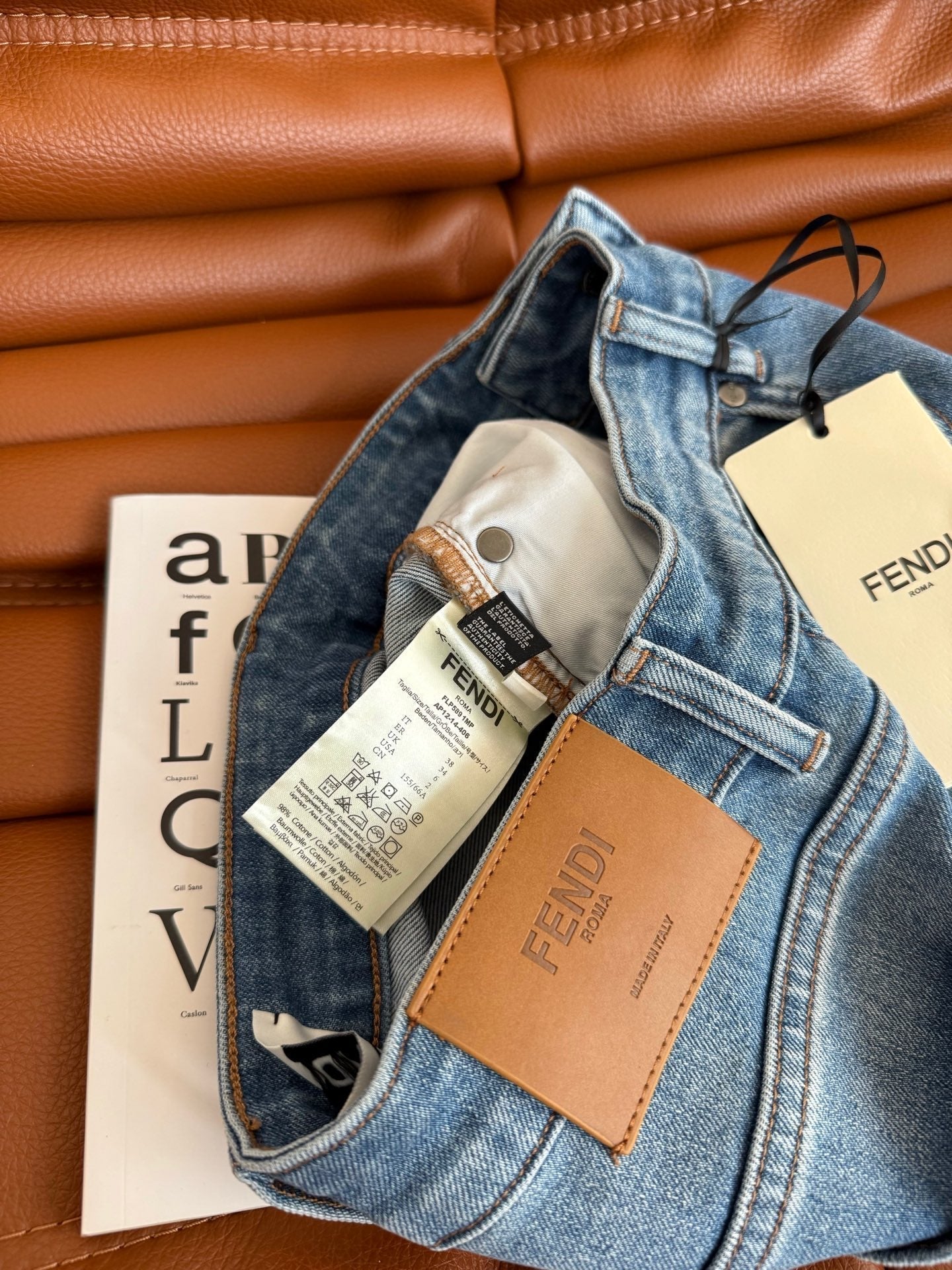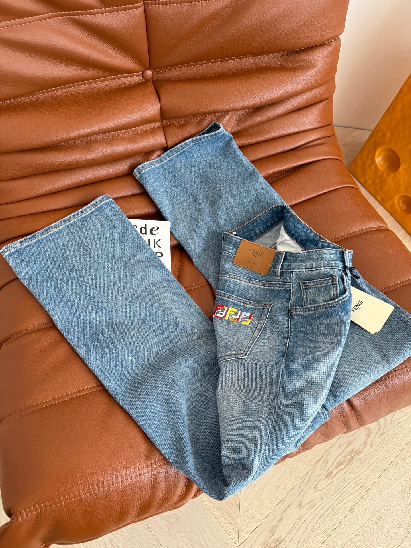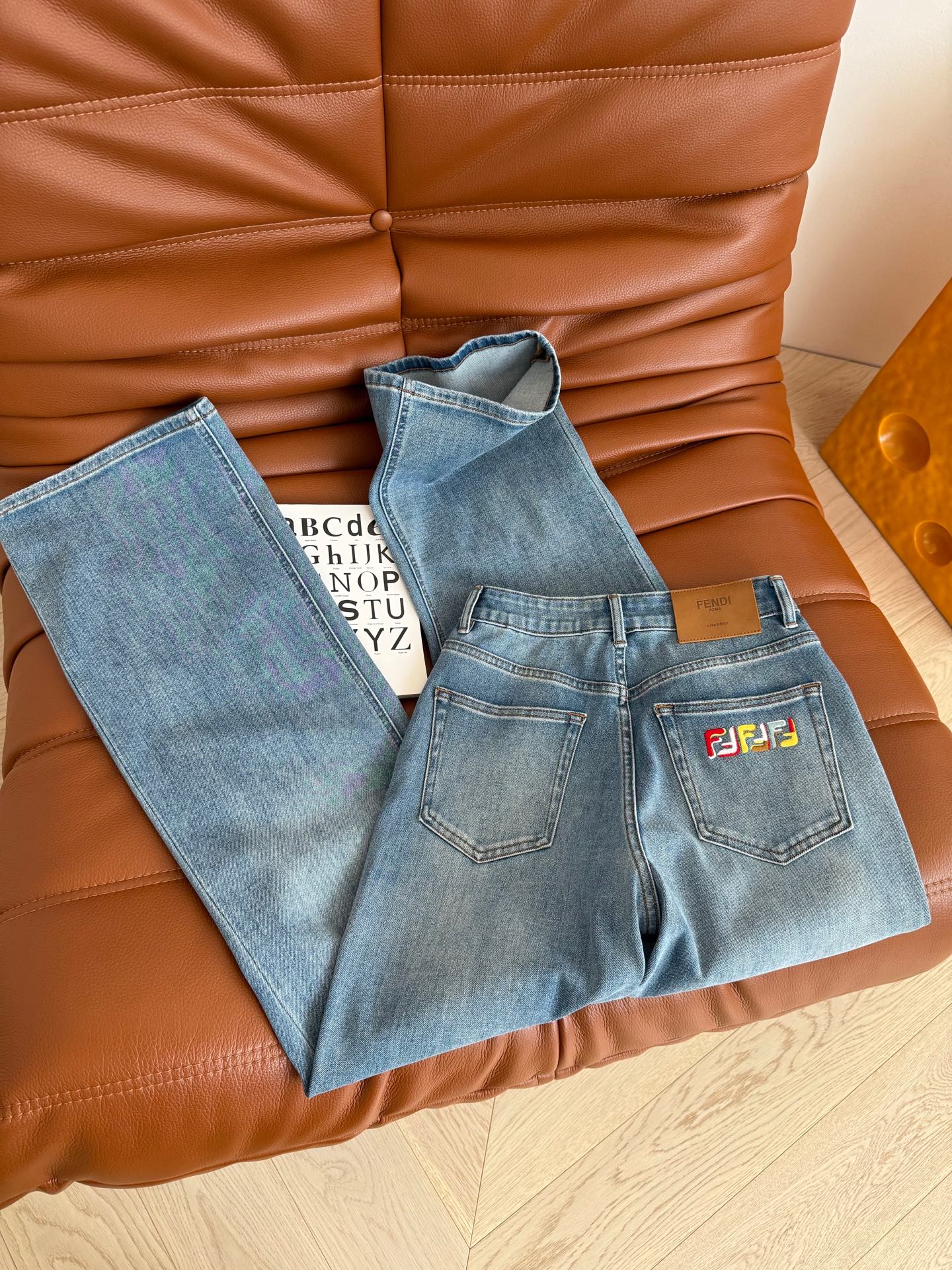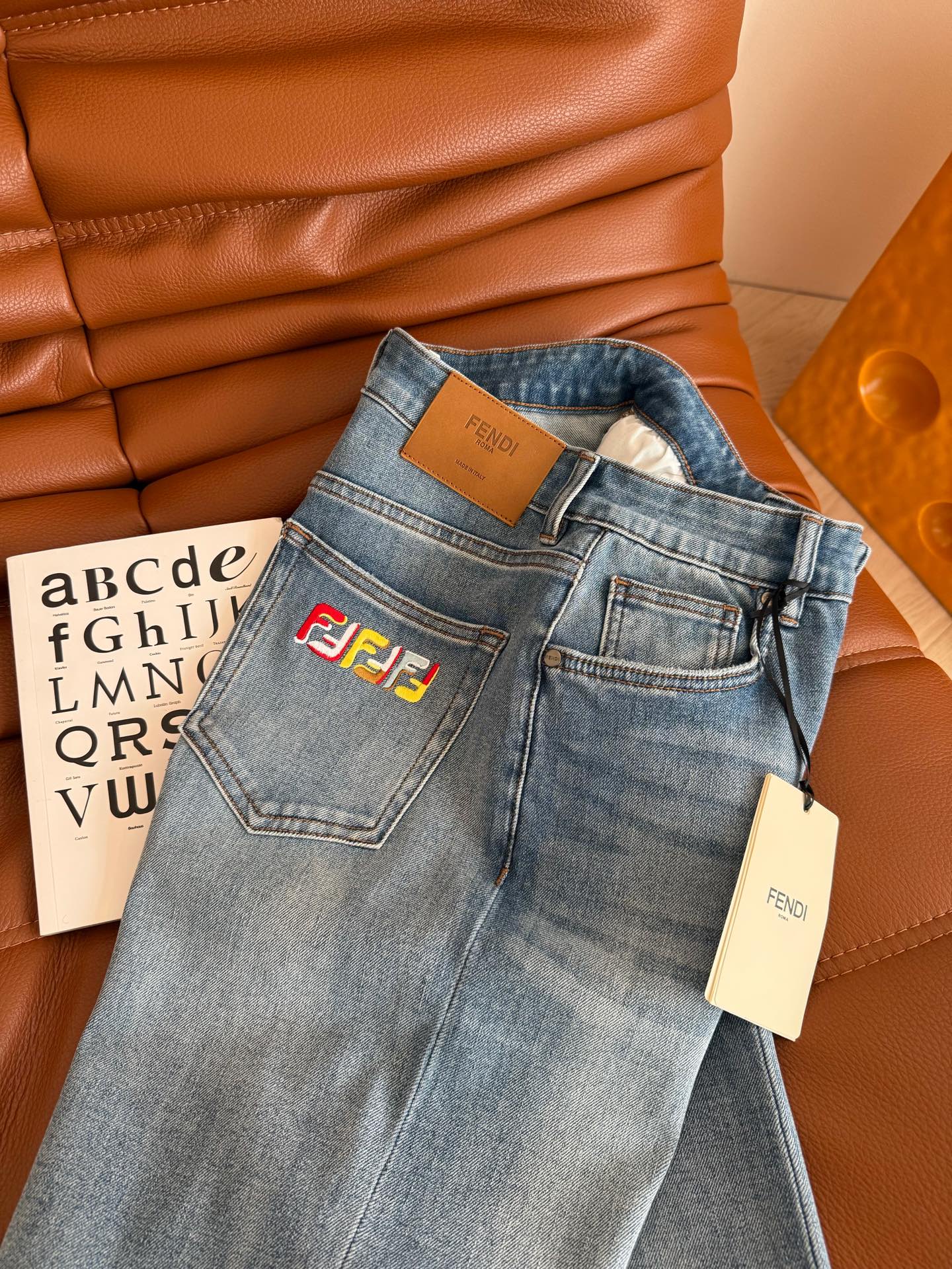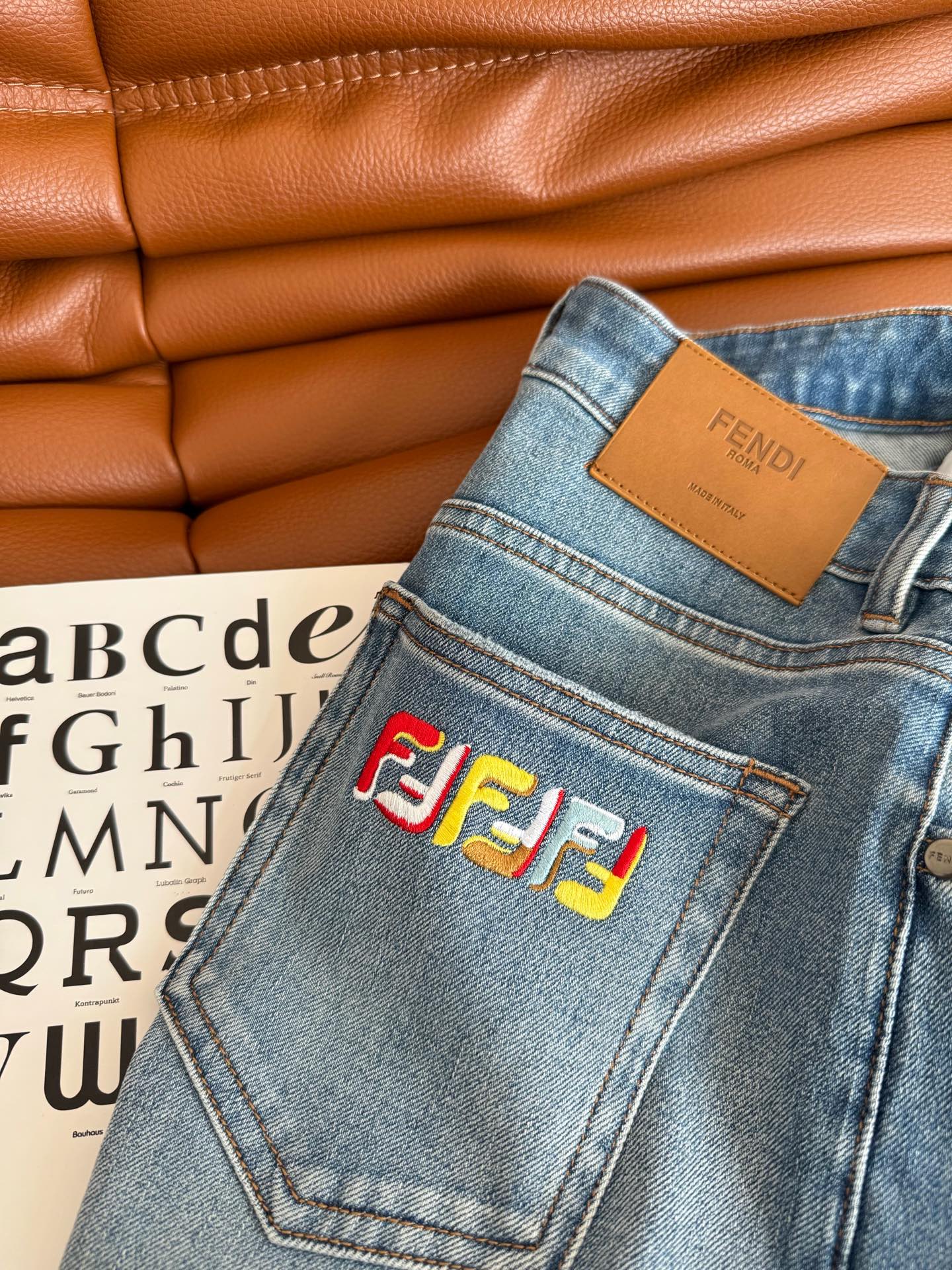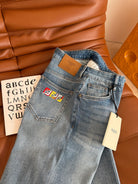 Fendi 25 Colorful Yarn Embroidered Letter Jeans Blue Cotton