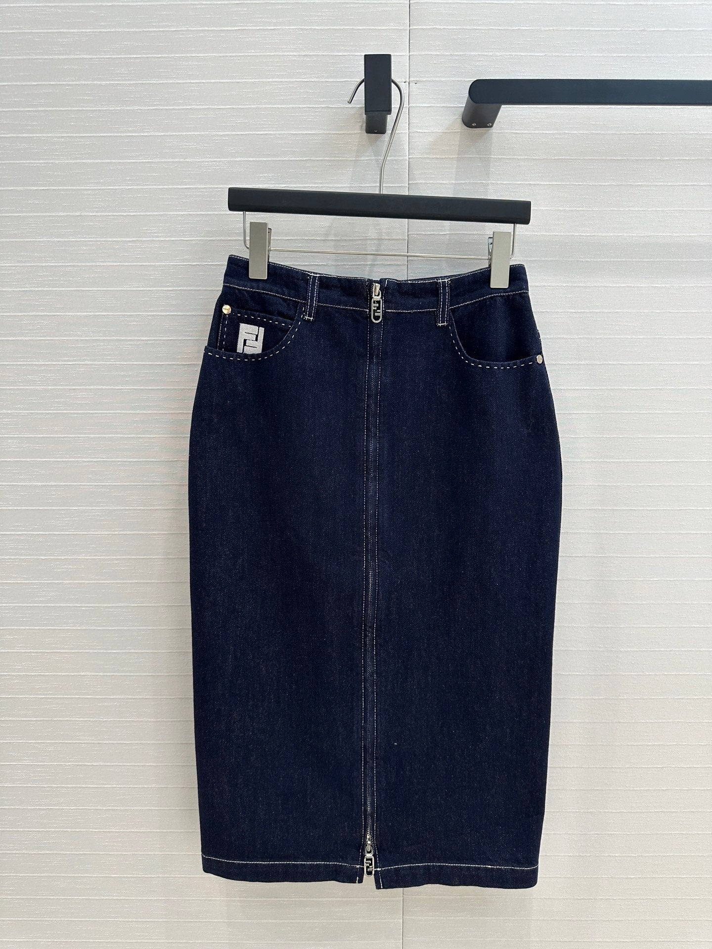 Fendi 25 Denim Skirt Dark Blue Cotton
