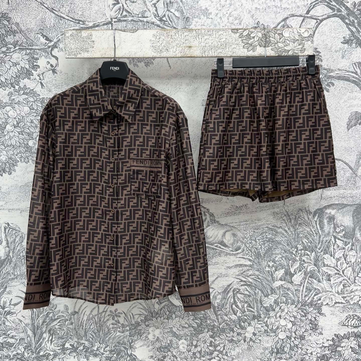 Fendi 25 double F shirt suit Black Brown Polyester fiber