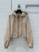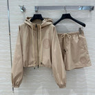 Fendi Hooded Jacket Set Beige Silk Fabric
