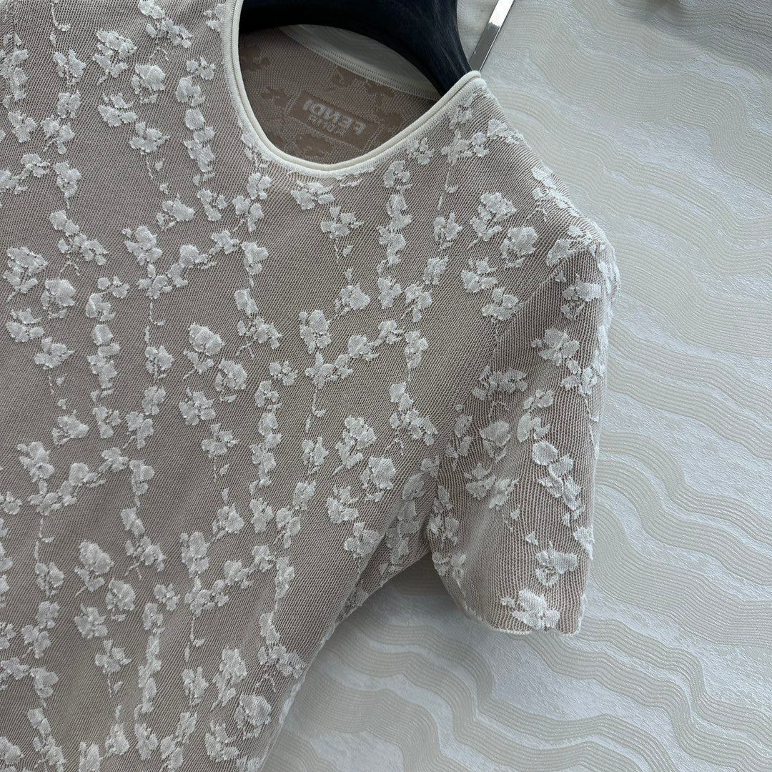 Fendi Knitted Top White Beige Cotton Viscose