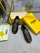 FENDI BAGUETTE LOAFERS IN OLIVE GREEN MIX BLACK CANVAS GOLD HARDWARE