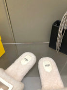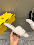 FENDI BAGUETTE SLIDE SLIPPERS IN WHITE WOOL