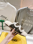 FENDI DAD SANDAL MULE IN BROWN MONOGRAM FF CANVAS WITH WHITE FLEECE