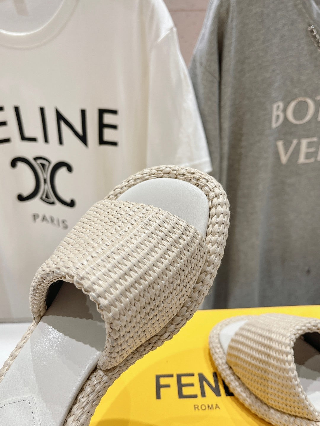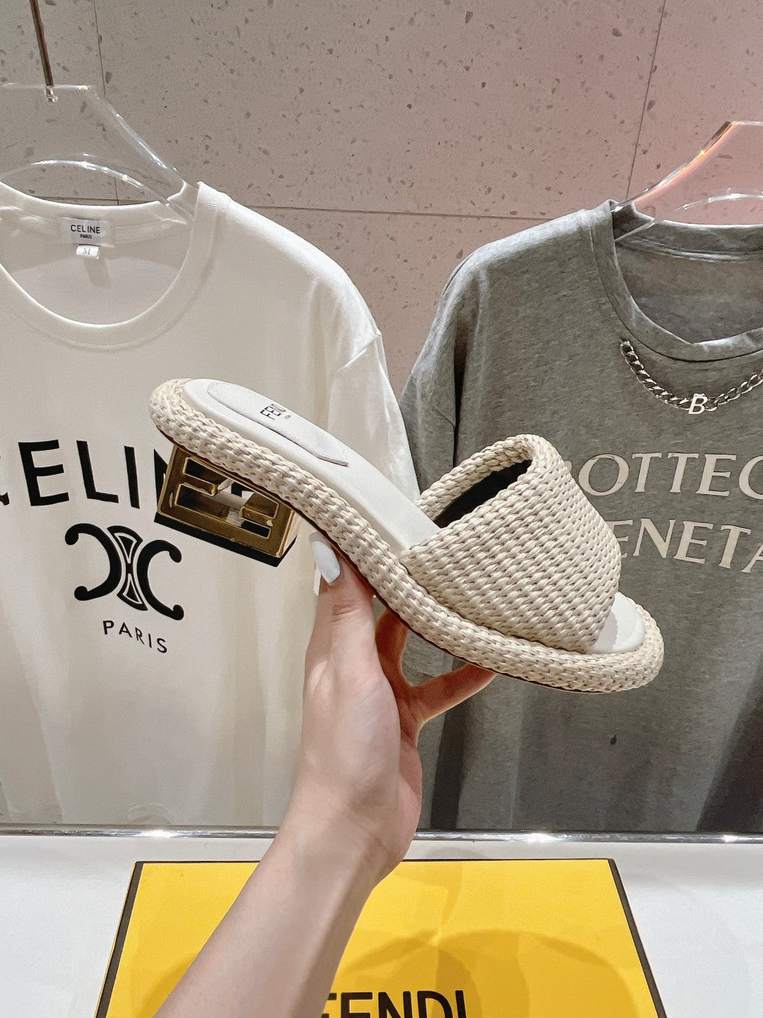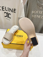 FENDI FFOLD MEDIUM-HEEL SANDALS 45 MM IN BEIGE COTTON FIBRE