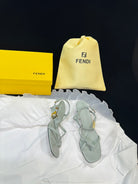 FENDI FFOLD MEDIUM-HEELED 55 MM SANDALS IN ASH GREY LAMBSKIN WITH GOLD HARDWARE