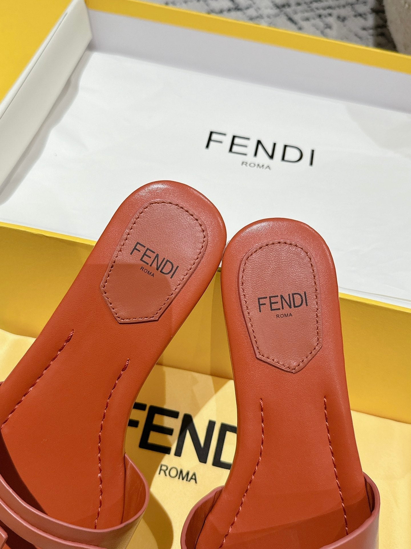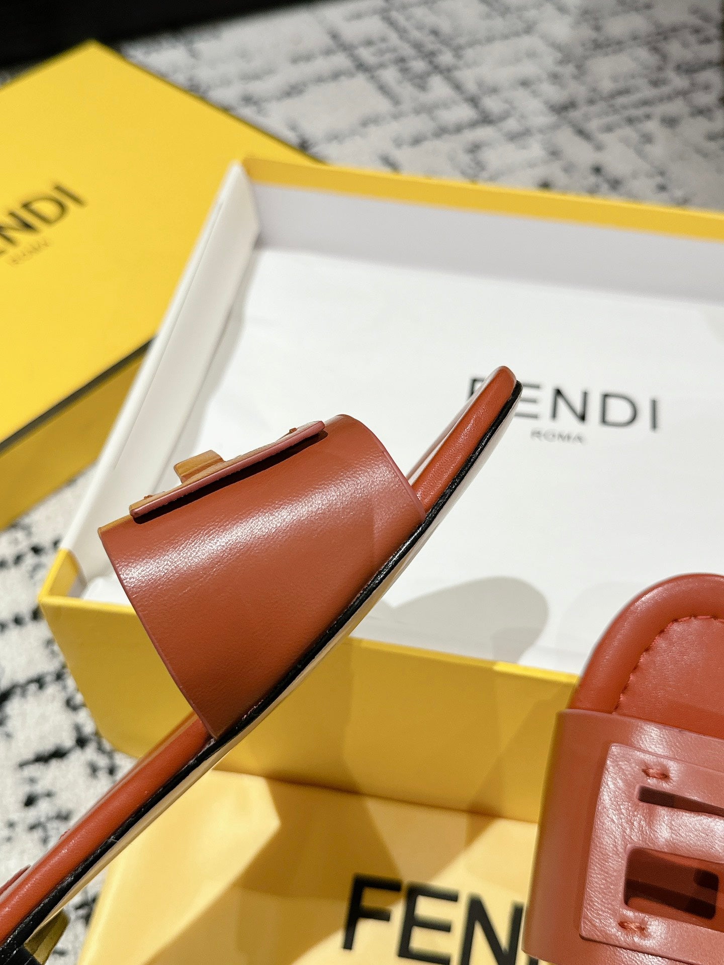 FF Baguette Rust Leather Slide