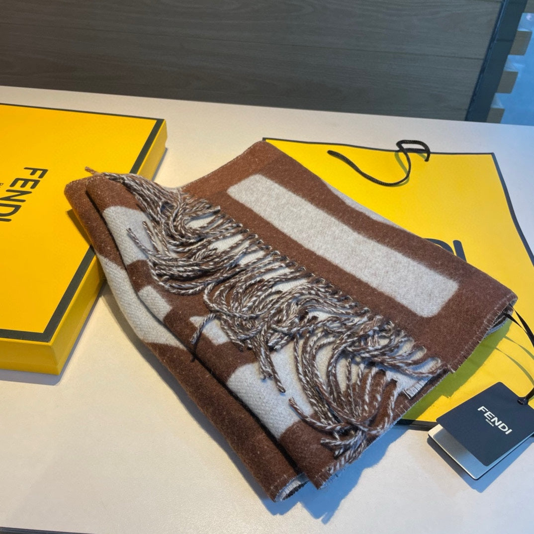 FF SCARF 180 CM IN MEDIUM BROWN MONOGRAM WOOL AND CASHMERE 411831