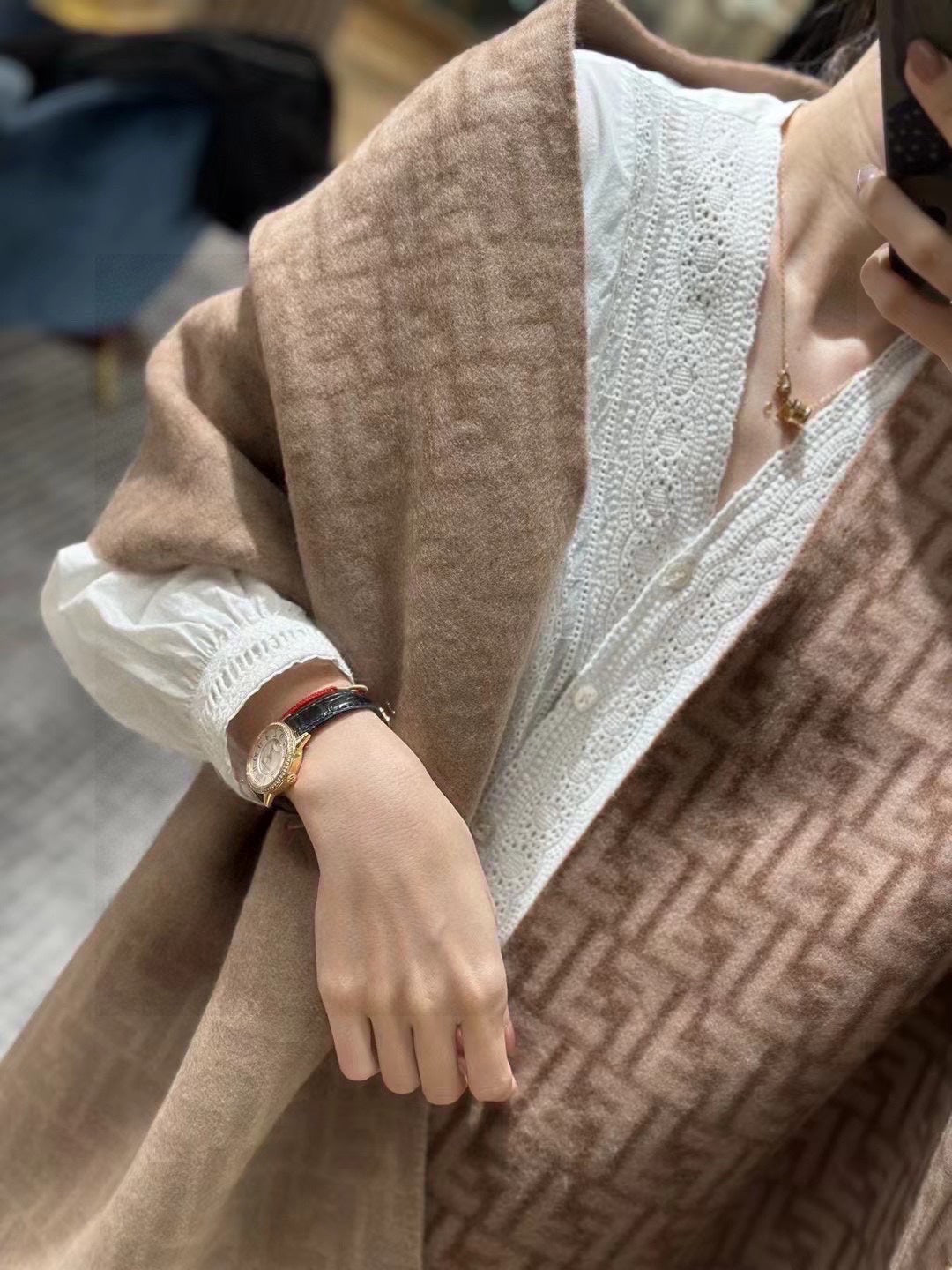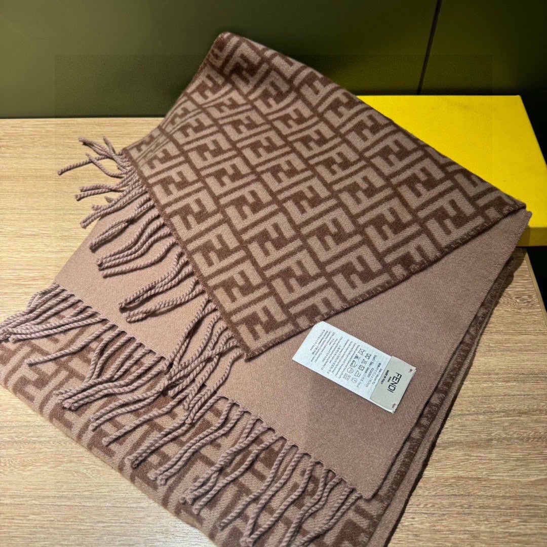 FF SCARF 180 CM IN MEDIUM BROWN MONOGRAM WOOL AND CASHMERE 411831