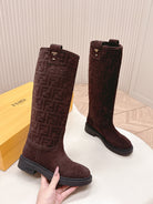 Fendi 25 high boots deep chocolate brown suede 500940