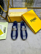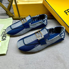 FENDI BAGUETTE LOAFERS IN AZURE BLUE CANVAS GOLD HARDWARE