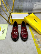 FENDI BAGUETTE LOAFERS IN MAROON RED CALFSKIN WITH GOLD HARDWARE