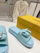 FENDI BAGUETTE SLIPPERS IN SKY BLUE LAMBSKIN WITH GOLD HARDWARE