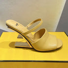 FENDI FIRST 95 MM HIGH-HEELED SANDAL IN MUSTARD YELLOW LAMBSKIN GOLD HARDWARE