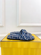 FENDI FLAT SLIPPER IN NAVY BLUE MONOGRAM JACQUARD FABRIC WITH GOLD HARDWARE