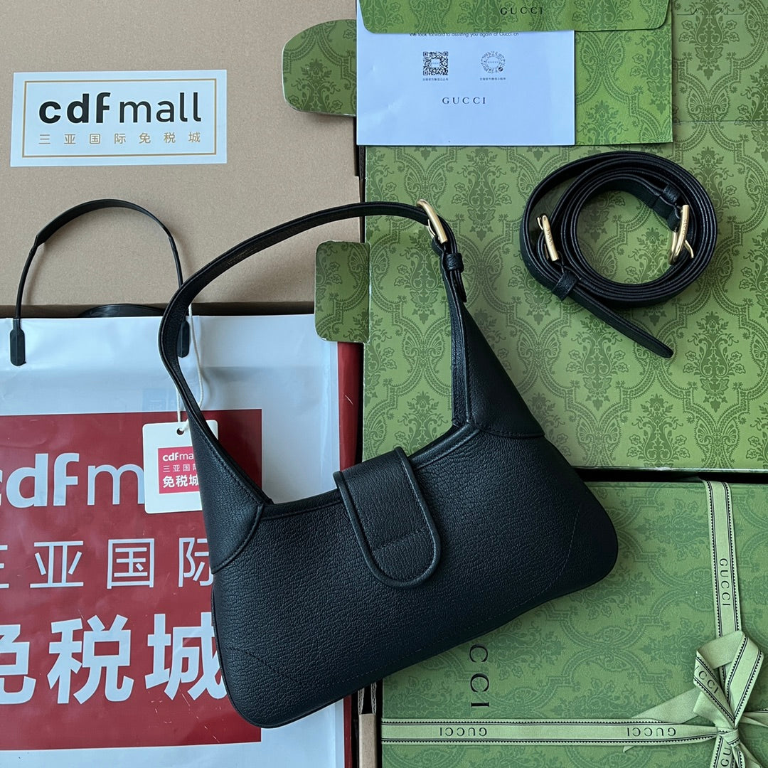 APHRODITE SMALL SHOULDER BAG 27 IN BLACK CALFSKIN GOLD HARDWARE