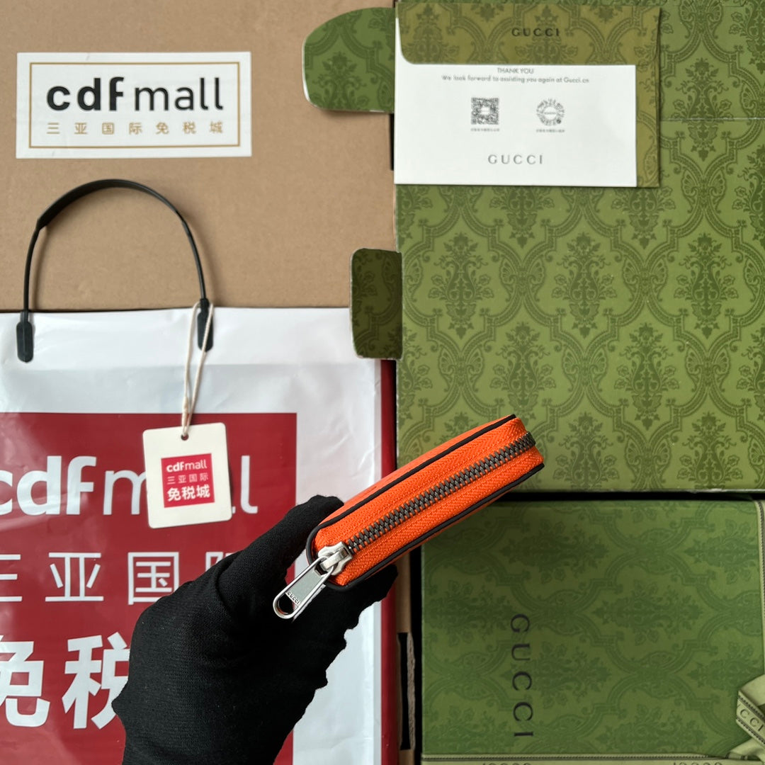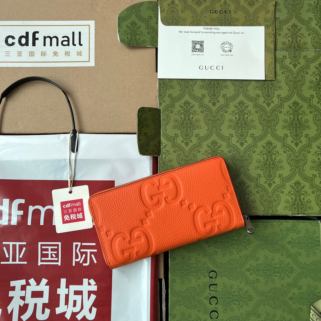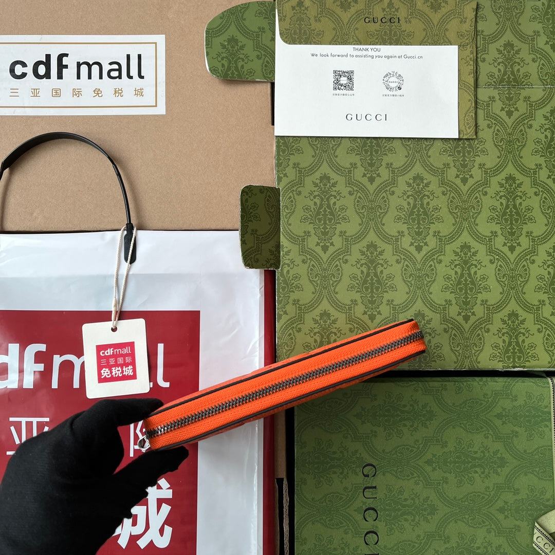 FULL-ZIP WALLET 19 IN ORANGE EMBOSSED CALFSKIN