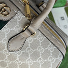 OPHIDIA MEDIUM TOP HANDLE BAG 31 IN BEIGE WHITE CANVAS AND OAT CALFSKIN TRIM GOLD HARDWARE