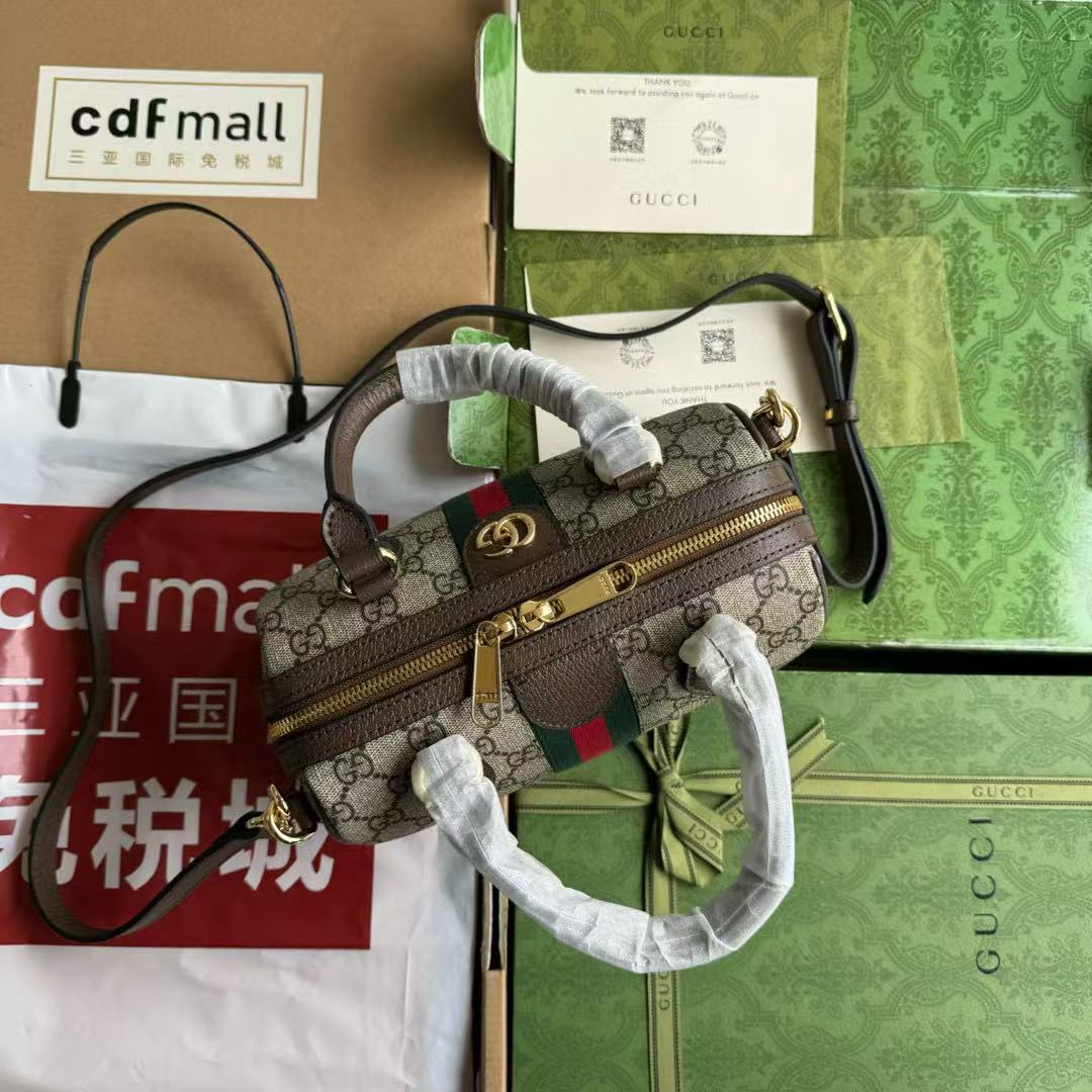 Gucci Ophidia 21.5 Bag Brown Ebony Leather Canvas